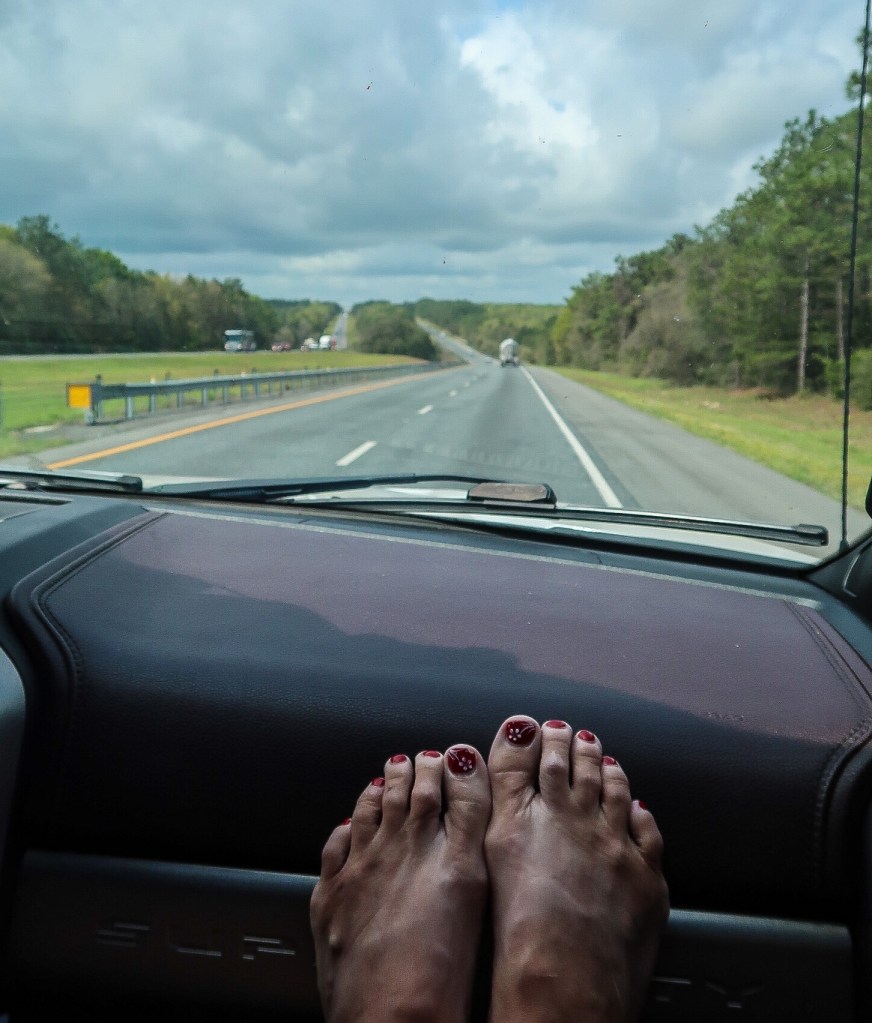 Long day of traveling….9 hours …516 miles! Left Florida, Alabama, Mississippi & now in Louisiana for tonight! Stopped at Santa Rosa rest area and saw a convoy of an unknown items and Blue Angel display. We arrived in shorts to be shocked by cold weather! It’s 57 & dropping to 46*tonight! Brrrr! 🥶 Time to walk!