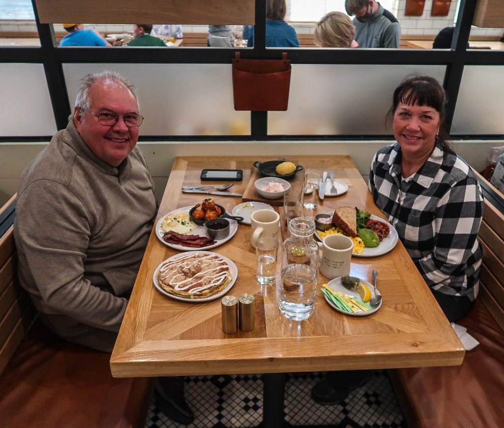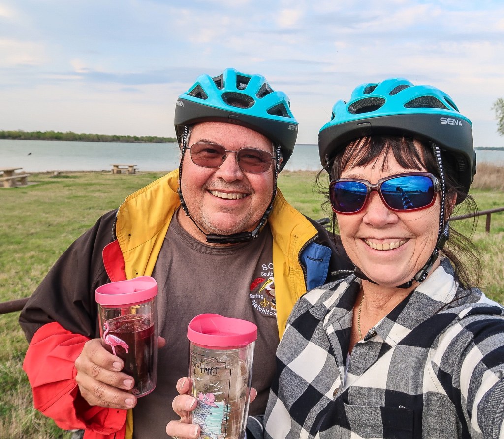 Up & out at oh dark-thirty this morning! 44* brrrr! 🥶 Greeted by deer in the park! 🦌 Got to Magnolia Table at 7:15am for breakfast! What an amazing breakfast! Strawberry butter, juice flight, cinnamon bun pancakes & more! Yummy 😋! Then went to Chip & Joanna Gaines Silo’s & Magnolia area! Loved all the shops, bakery, church, baseball area, garden shop & more! Then drove to Harp Design…Clint Harp makes all the custom furniture for the show “Fixer Upper”! Next we found one of the first homes Chip & Joanna did here in Waco! We drove around town a little admiring the old bridges & buildings then off to the Texas Ranger Museum!! ⭐️ Really interesting! Next we went to Cameron Park! Over 400 acres of trails & overlooks! Did some hiking around Lovers Leap which was breathtaking! Came back to the campground and decided to have a happy hour bike ride down to the marina! 🚴 🍷 Completed the day with a cozy campfire! 🔥 It’s really hard work being a tourist! 🤣🤦🏻♀️ Good night all! 😴