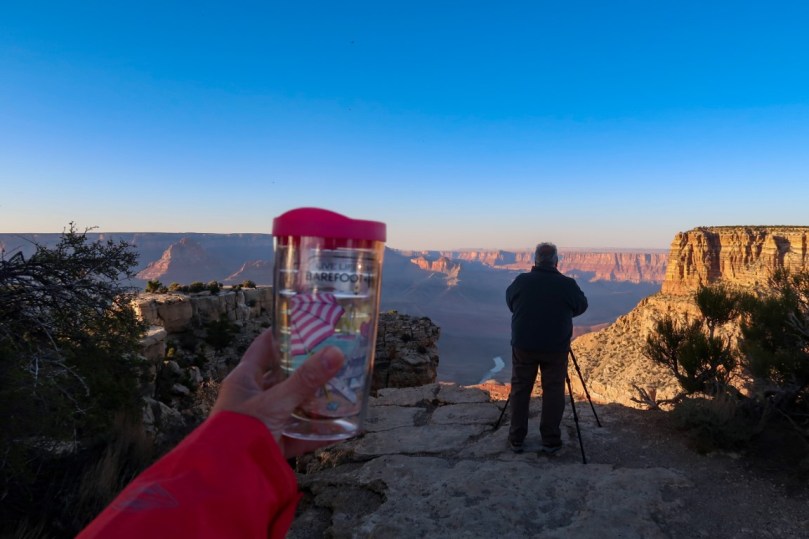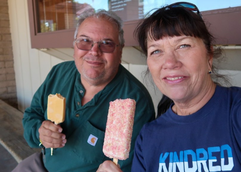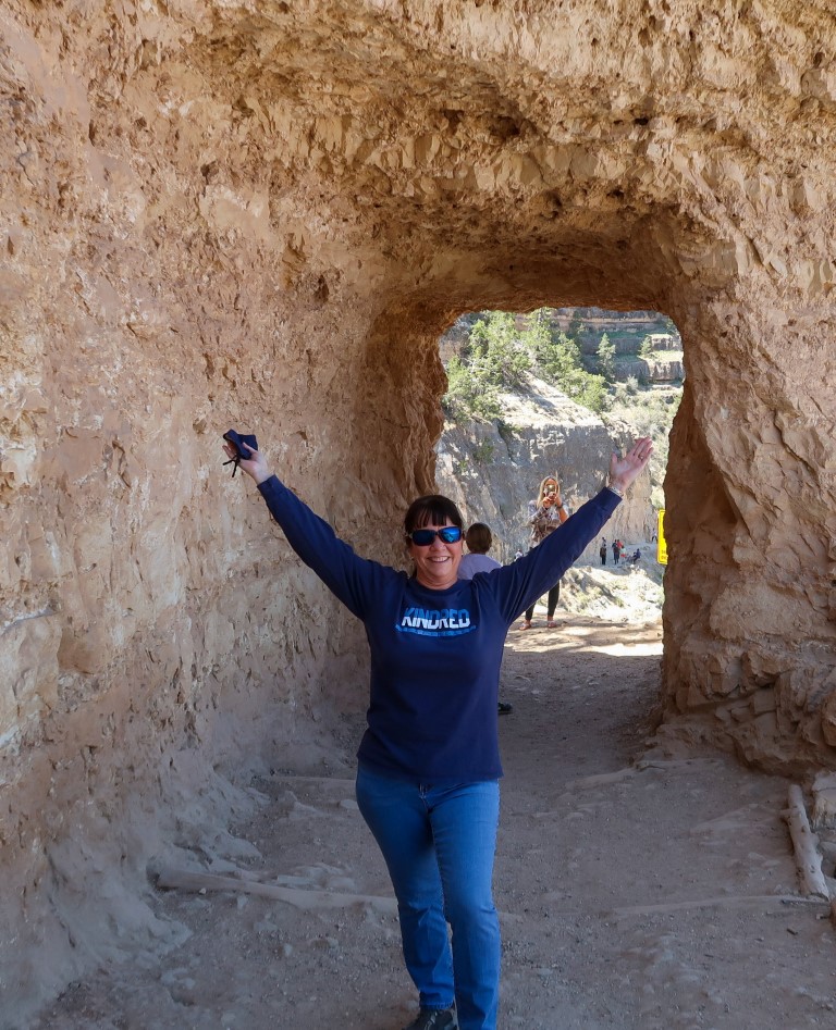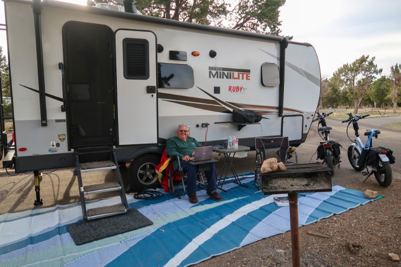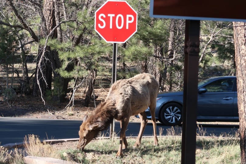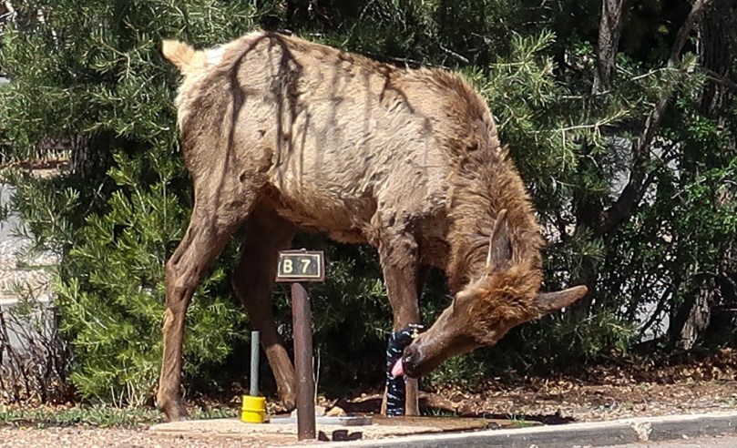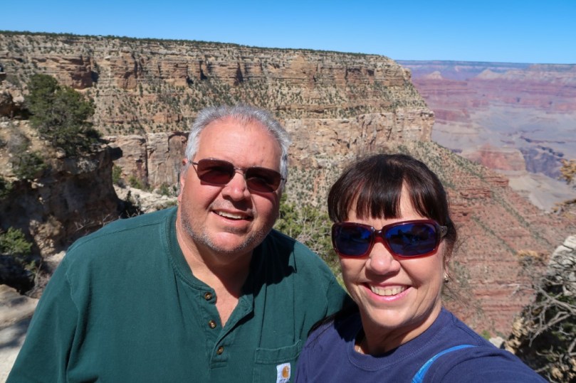 Grand Canyon was very cold place. 30* at night! 🥶❄️🥶 The park is 102 years old. The canyon width is 18 miles at its widest point and the floor is 4800 ft below the rim. 😱 The Colorado River flows 277 miles inside the park. Photographing this canyon is impossible! It’s one of those places you must see with your own eyes! Our campsite couldn’t be any better for right across from us is a grassy field and we are greeted with Elk morning, noon and night! 🦌 They are all over this park and have no fear of people. We put lots of miles on our bikes. A lot of hiking the rim and the beautiful trails this park offers. I even took a portion of the Bright Angel Trail! 🥾🚶🏻♀️This is the trail people can ride mules down to the bottom and spend the night before heading back up. Sunset pictures taken at Moran Point with a view of the river! Took a shuttle bus to Hermit’s Rest (which is at the end of the park) where we stood under the bell for good luck! Well I did it 4 times!!! 🤦🏻♀️ Sunday was an amazing day for we had booked months ago lunch reservations at El Tovar Lodge at the GC village! What a magnificent view, having lunch looking at the canyon. We are finally relaxing!!! Our last night we were exhausted from our day that dinner consisted of wine, pop tarts & pudding! 🤣😂😍