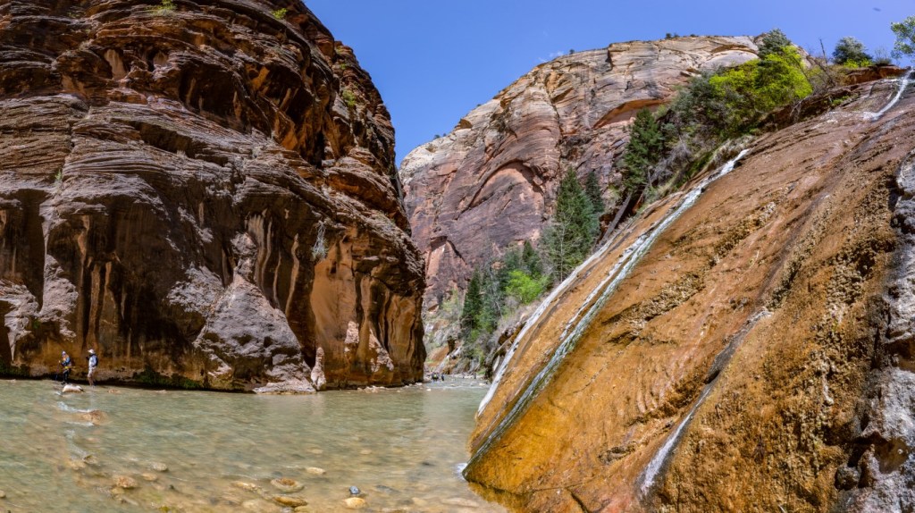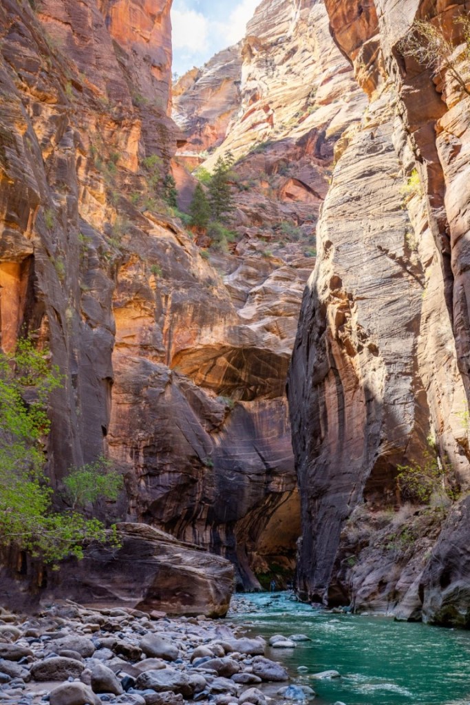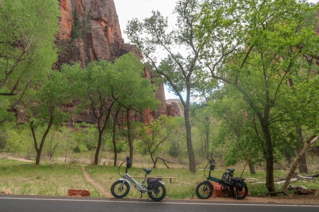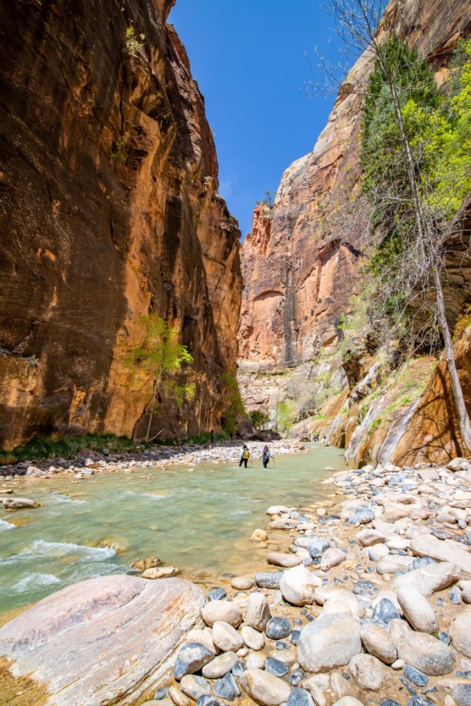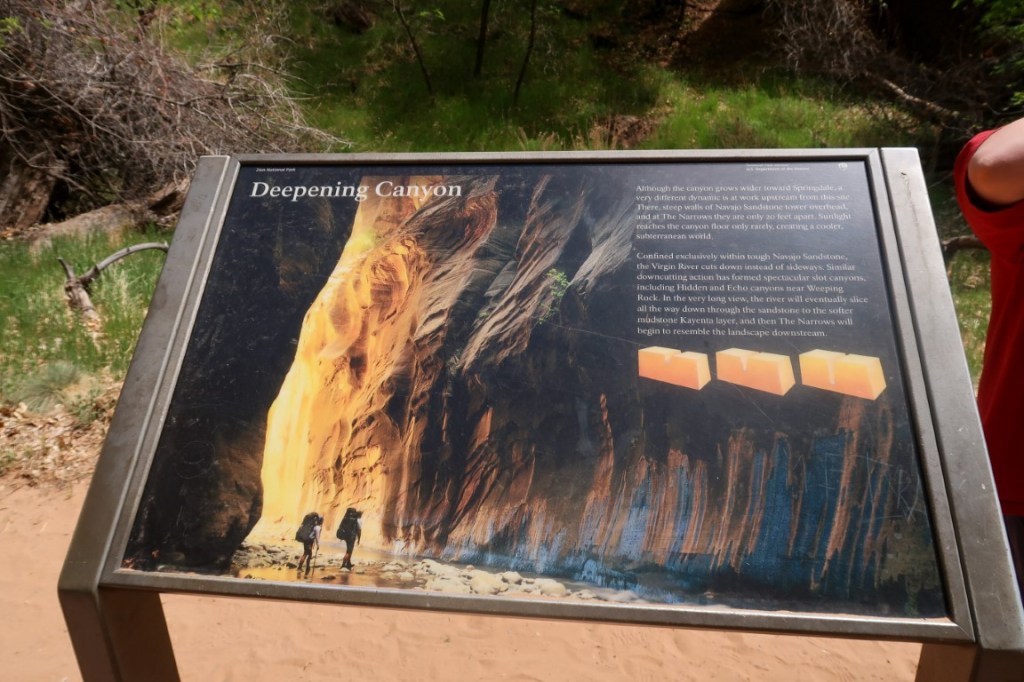 😍The most amazing adventure we have ever done! 👫🏻 The morning started with helping each other put on our rented waders, neoprene socks, then boots! This was hysterical. The water temperature is 36* so this was needed for us Florida folks. 🥶 Then packed our bikes up and rode all the way up to Temple of Sinawava to start our hike on the Riverside Walk for one mile to the beginning of the Narrows. The Narrows is the narrowest section of Zion Canyon. This gorge, with walls 2,000 feet tall and the river sometimes just twenty to thirty feet wide, is one of the most popular areas in Zion National Park. It’s an 8 hour hike, 9.4 mile, 334 ft elevation change, going up stream in a very rocky, slippery Virgin River. You are responsible for checking the weather, water levels, flash flood potential prior to attempting this hike. And sign a waiver! 🤦🏻♀️ The hike through The Narrows requires hiking in the Virgin River & a hiking stick is a must. You must get your feet wet since there is no trail, switching sides trying to stay in the shallowest part of the river. Most of the time the water was below our waist. What a beautiful but challenging adventure. Such beauty all around us. We then dragged our tired bodies up the path to our bikes where passer-bier’s got a laugh for we needed each other’s help to get these wet shoes and waders off and into dry clothes & sandals for our long ride back down the mountain. So after a 17 mile round trip bike ride 🚴, 2 miles walking on the trail & 2 1/2 miles walking on rocks in the river, we came back cold & exhausted! It was hot soup & called it a night. 💤