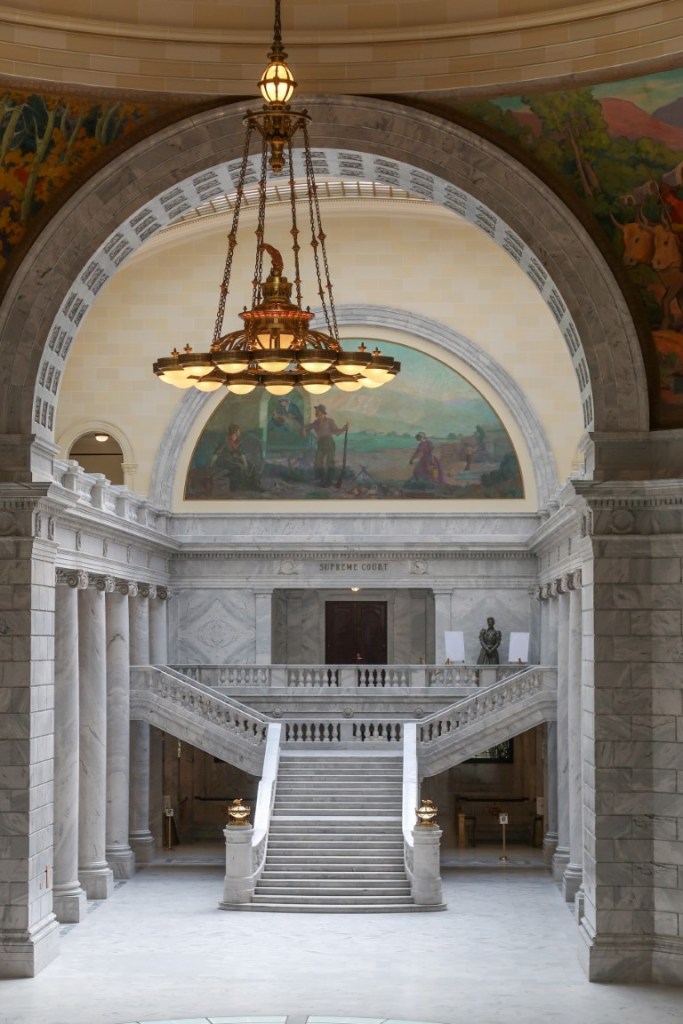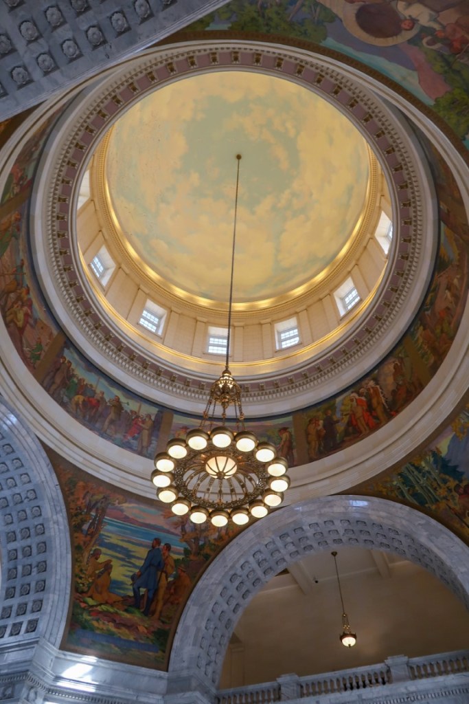 Salt Lake City, the most populous county in Utah is the Capitol with an estimated population of 200,567 (in 2019) was our next destination! We hit this city running. On our way we stopped off at Timpanogos Cave National Monument. Unfortunately the cave was still closed but we walked a trail in the park! Stunning area. 🎉 Only in Salt Lake City for 2 nights at a KOA, we had to make the most of our time. My girlfriend Nancy from grade school who we met up with at Moab…..well they were here for one night so as soon as we got setup we met them at Red Iguana 2 for an early Mexican dinner! Awesome margaritas! 🍹 so good to spend time with them again! We even made an appointment at Ford for the truck to get an oil change….🚙Uber picked us up to take us to a pick up point to hop on a tour bus 🚌 to use our time wisely! 🤦🏻♀️😱 ** Salt Lake City was founded in 1847 by early pioneer settlers, led by Brigham Young, who were seeking to escape persecution they had experienced while living farther east. The Mormon pioneers as they would come to be known, entered a semi-arid valley and immediately began planning and building an extensive irrigation network which could feed the population and foster future growth. Salt Lake City’s street grid system is based on a standard compass grid plan, with the southeast corner being Temple Square (the area containing the Temple in downtown Salt Lake City). Immigration of international members of the LDS Church, mining booms, and the construction of the first transcontinental railroad initially brought economic growth, and the city was nicknamed “The Crossroads of the West”. The settling of Salt Lake City dates to the arrival of the Latter-day Saints in July 1847. They had traveled beyond the boundaries of the United States into Mexican Territory seeking a secluded area to safely practice their religion away from the violence and the persecution they experienced in the US. Upon arrival at the Salt Lake Valley, president of the church Brigham Young is recorded as stating, “This is the right place, drive on.” Brigham Young is said to have seen the area in a vision before the wagon train’s arrival. They found the broad valley empty of any human settlement. The largest park in Salt Lake City is This is the place Heritage Park, 217.5 acres. This is the Place Heritage Park re-creates typical 19th century LDS pioneer life and contains over 50 restored or replicated historical buildings. This was a really cool area with so much history. **Salt Lake City is home to The Tabernacle Choir at Temple Square founded in 1847 as the Mormon Tabernacle Choir. Also serves as the headquarters for Latter Day Saints. Unfortunately, the temple is under construction and with Covid we couldn’t tour it but we were able to walk the grounds inside temple square. Beautiful buildings & flowers are all over the grounds so I was in heaven! **Big Cottonwood Canyon is a beautiful scenic 15-mile long canyon that we drove our first day. Its two ski resorts, Brighten and Solitude are popular among skiers and snowboarders (they were closed but had lots of snow all around). We drove to the top to Guardsman Pass at the top of the canyon as far as we could go till we came to snow. ❄️ *** The next day we went to Antelope Island, with an area of 42 square miles, is the largest of ten islands located within the Great Salt Lake. The island lies in the southeastern portion of the lake, and becomes a peninsula when the lake is at extremely low levels. This is a great place to view wildlife. The island was without its namesake antelope for many years, but they were reintroduced in 1993 and can now be seen in many areas of the park. Deer, bobcats, coyotes, many varieties of birds call the island home. But most famous is Antelope Island’s American Bison 🦬, introduced to the island in 1893 and now numbering some 600 animals. It’s crazy to see them grazing all over and near the Lake. Great Salt Lake does not have fish, but does have brine shrimp and brine flies which provide food for visiting waterfowl. Because of the high salinity, the island is mostly without readily available fresh water. To our amazement we saw the state bird…seagulls flying all around the lake! ***Toured the Capitol building on Capitol Hill. Built between 1923-1916, Corinthian style, 404 ft long, 240 ft wide and the dome is 250 ft high. The exterior is made of granite,..52 Corinthian columns each 32 ft tall by 3.5 ft in diameter. We got to tour parts of the 1st, 2nd & 3rd floors. It’s all marble walls with paintings and sculptures about Utah’s history and heritage. The rotunda has a beautiful mural and on either end had large skylights. The state reception room was all done in gold with extensive gold leaf decor. We toured the legislative floor…the chambers for both House and Senate along with the Supreme Court. A big display for Martha Hughes Cannon, the first Woman State Senator in 1896 in the US. She defeat her own husband! 😮We drove around Utah University and through Ft. Douglas (established in 1862 during American Civil War). Salt Lake City hosted the 2002 Winter Olympics and this is where they housed the 2500 Olympians from 77 nations. Got to see where Olympic Park was, this was where ski jumping, bobsled and luge events were and also got to see the Stadium that was built for opening and closing ceremonies. The torch is still there which was cool to see. Also got to see the Vivint Smart Home Arena where all the figure skating and short track speed skating events took place. ⛸ **What an exhilarating 2 day adventure in this amazing city that’s surrounded by snow capped mountains! We ended our adventure with going to Uinta Brewing Company! 🍻 Tim loved the Detour Double IPA and the food was amazing there! Super fun day! Off to Vernal for 2 days!