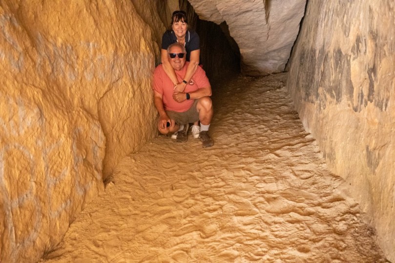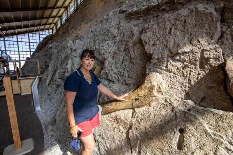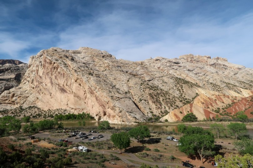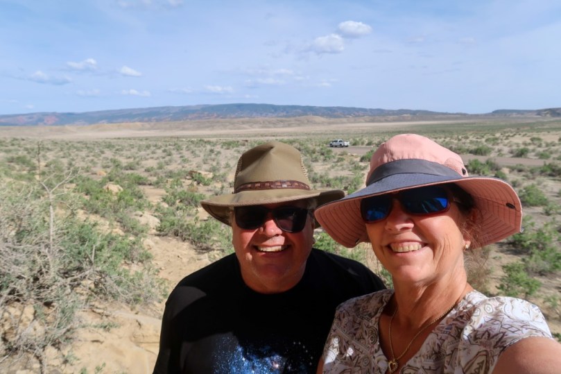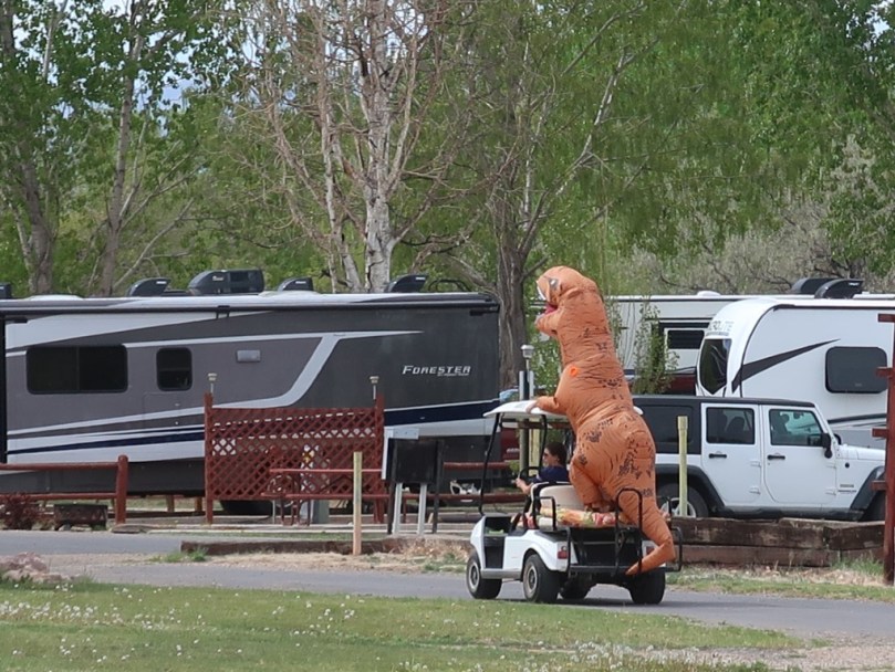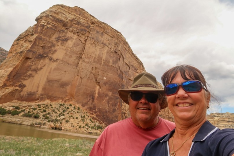 Vernal….yes Vernal Utah! Never heard of it, we’ll sit back and let me tell you about our next stop for 2 nights! It’s 86* when we arrived so a quick change….and oh how our feet were happy to see sandals! Ahhh 🌞 Vernal is in northeastern Utah, 178 miles east of Salt Lake and 20 miles from Colorado. The population was 10,400 in 2019. Its known as Dinosaurland! 🦕 🦖 Near by is Dinosaur National Monument and Utah’s Field House of Natural History and State Park Museum. Everything has a dinosaur or two outside it’s building. They mine Phosphate ore here in Vernal and economy is also based on petroleum, natural gas and uintaite/Gilsonite. The town depends on tourism for towns roots in the Old West and ancient dinosaur fossils. For outdoorsman people there’s lots of hiking, fishing fly fishing and hunting as well as rafting the rivers and camping. ***** 🦖 Dinosaur National Monument has one of the Earth’s richest known dinosaur fossil beds! These remains are from the Jurassic period 150 million years ago. During a drought, it is believed many of them died near a river’s edge. When the rains returned, flood waters carried the bones of over 500 dinosaurs, (10 species) to the area. Ancient river sediments, called Morrison sandstone, entombed the bones. It’s believed that minerals saturated the bones and cast them in stone. In 1909 Earl Douglas, of Pittsburgh’s Carnegie Museum, found the fossils after erosion exposed them. We were able to get a reservation to visit the Quarry! 🦴 OMG…. what an amazing site to see! Never imagined to see so many fossils in the mountain side preserved for generations to see! We were awestruck at the wall of dinosaur bones! *********There are 4 entrances to this park, spread out throughout Utah & Colorado. We visited the park on the Utah side on our first day. Did a driving tour to every overlook, trail, saw petroglyphs all the way to the Green River! At the end of split mountain was Josie Morris cabin on 80 acres where she lived for 50 years surviving off the land by herself! Her family had lived in that house since 1870. 🪵 Oh my! **The next day we drove to the Colorado entrance. 🛻 Drove to the end to Harper’s Corner stopping at all the overlooks, seeing 163 miles across the Escalante Valley & mountain range! 🏔 To add to the adventure we took a 26 mile round trip down a steep, rocky trail with switchbacks around every corner (sometimes having to back up if another vehicle was coming the opposite direction, for it was a narrow high clearance, 4WD trail). Drove all the way down to Echo Lake stopping off at all the site-seeing sites! 😎 Echo Lake sits at the heart of Dinosaur National Monument at the bottom of the canyon. The Green River winds around the monolith known as Steamboat Rock. Sheer cliffs rise all around. Just upstream, the wild Yampa River joins the Green River. Here we walked the trail around the river having wild geese in the fields around us. **One of the stops down was to a big gash in the sandstone “Whispering Cave”. This big fissure in the sandstone rock provides a cool and shady spot to crawl into for awhile, but it’s really cold inside! Not sure what critters hang out in there, so we didn’t venture to far back into it. It got very narrow so stopped when our bodies wouldn’t squeeze through anymore! 😂 Next stop was Pool Creek Petroglyphs, These unusual petroglyphs feature dot-pattern designs and are high above the creek along the rock face. 🪨 Came upon the old Chew Family Ranch! House, cabins, outhouse, wagon, and corrals. The complex is listed as a historic district on the National historical places.🐎 ***Exhausted after this full day of adventures in one park but 2 states….we ordered Pizza Hut 🍕 and relaxed back at the camper. Now it is time to pack up, get our heavy winter clothes & jackets out for we’re off to Leadville, Colorado where it’s 🥶❄️ !