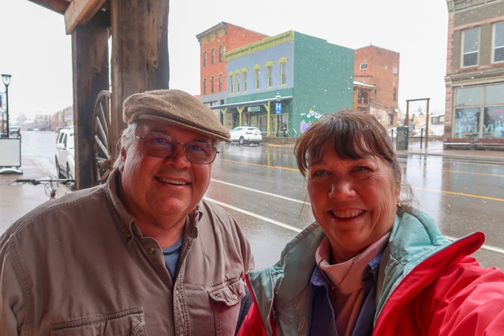 💞 Leadville, Colorado is a very special place for us. 40 years ago next month will be the first time Tim & I came here and stayed at Sugar Loafin’ Campground. We visited here numerous times over our first 10 years while the boys were young. The last trip here was 21 years ago with our 3 sons and 2 dogs!! 🐶 🐕 That year we dressed up in our Marlins shirts and hats and built a ⛄️ ( put a Marlins hat ⛄️ too) there at Turquoise Lake, that picture actually got published in the Marlins program for “where has your Florida Marlins Hat been”! Tim’s great, great, grandfather was a miner here and back in 1981 during our first trip to Leadville, we found his house and toured the mines. Our 1985 trip, we walked into an Antique Store (close to Mt Elbert) there in Leadville …..and walked out with our deer mount that sits above our fireplace to this day…and his name is Elbert 🏔 Tim made a mount on the wall of the RV for it to hang over the table, so it wouldn’t get damaged on the drive home! 😱🤦🏻♀️ Across from that, Tim had suspended the playpen above the back bed for 10 month old John! All about the rigging!🤣 For that 6 week trip we traveled in a Class C motorhome which we rebuilt inside and out and of course we sold it when we got home to get something else! As you can see we have such wonderful memories in Colorado! 🏔 ***Leadville is the highest incorporated city in North America at an elevation of 10,152 feet.The mountain scenery is out of this world, with 14-thousand foot peaks all around you, including the 2 tallest peaks in Colorado.🏔 ⛰ Mt Elbert 14,440 & Mt Massive 14,428! Both surrounded us at the campground. The city population was 2,762 in 2018. A former silver mining town it lies in the heart of the Rocky Mountains & the Leadville Historic District contains many historic structures and sites in its dynamic mining era. In the late 19th century, Leadville was the second most populous city in Colorado, after Denver. ***The Leadville area was first settled in 1859 when placer gold was discovered in California Gulch during the Pikes Peak Gold Rush. The early miners had noted that mining for placer gold was hampered by heavy black sand in the sluice boxes and in 1874 it was discovered that the heavy sand that impeded gold recovery was the lead mineral cerussite, which has a high silver content. Prospectors traced the cerussite to its source, present day Leadville, and by 1876 had discovered several silver-lead deposits. Horace Tabor, who became known as the “Leadville Silver King”, and his wife Baby Doe were among the first prospectors to arrive in Oro City. Tabor tried his luck at prospecting while his wife worked as a camp cook, laundress, banker and postmistress. Leadville was founded in 1877 by miners Horace Tabor and August Meyer. The town was built on desolate flat land below the tree line. The first miners lived in a rough tented camp near the silver deposits in California Gulch. Initially, the settlement was called “Slabtown”, but when the residents petitioned for a post office, the name “Leadville” was chosen. By 1880, Tabor and Meyer’s new town had gas lighting, water mains, 28 miles of streets, five churches, three hospitals, six banks, and a school for 1,100 students. Many business buildings were constructed with bricks hauled in by wagons. A lot of the old mines still stand and the town has been preserved very well! *** As we climbed up the mountain side to Leadville, the temperature was dropping fast. Saw moose along the road. As we pulled in it was 38* 🥶❄️ We were very excited when we pulled in to Sugar Loafin campground to see that it was exactly like it was all those years ago! The office, play ground, sites still the same…ice cream social nightly continues (for $1.00 you bring your own bowl & spoon & it’s all you can eat)… our family loved this! The campground is 53 years old and it’s run by the couples son Don now. His mom Mary died 5 years ago & gave him the campground! She was the mastermind behind starting up the campground. We couldn’t express enough to him how we loved the simple campground and so glad the family who started it stills runs it! We shared many memories with him. We set up Ruby in the best site, surrounded by snow capped mountains all around us.❄️🏔 Then took a ride up to Turquoise Lake, which was frozen solid and snow deep all around us when then it started snowing! ❄️ Like a little kid I got out and danced around and played! Called all the kids to show them the snow! 🥰 Then after feeling really cold we drove into town! We’re driving while it’s snowing…crazy fun! Went into the Legendary Silver Dollar Saloon and each had 2 drinks to warm the bones! 🥃🍹. ***The Silverdollar is the second oldest saloon in Colorado. Established in 1879….With its original tile floor (brought in from Italy was the first tile floor in Leadville) and its custom made bar with original diamond dust mirrors. When we entered it was like stepping into the past. As you enter the doors which are very thick wood and heavy, there’s a windbreak room (dual purpose area, keeps harsh winds & cold out and obstructs view of drinkers inside)! Many features throughout the building are the original pieces. Even the trap doors behind the bar for quick disposal of bottles. The back room was used for gambling & musical entertainment. The saloon has stayed opened since it opened. The bar is named after the second daughter of Horace & Baby Doe Tabor … for her baby giggle sounded like “the ring of a silver dollar”. (Rosemary Silver Dollar Tabor). Around 1883, outlaw “Doc Holliday” moved to Leadville after the fight at the OK Corral. He live across the street and visited the saloon for gambling, drinking and played the piano (which is still in the back room today). Jimmy Buffet wrote the song Incommunicado in one of the booths. The song is about the passing of his friend John Wayne. 