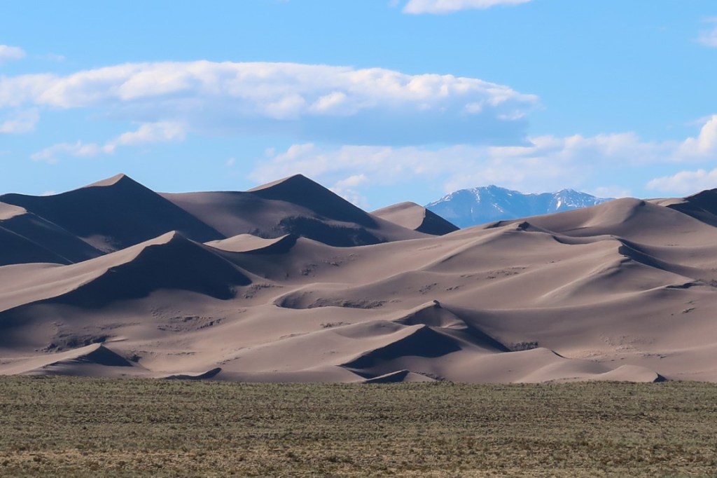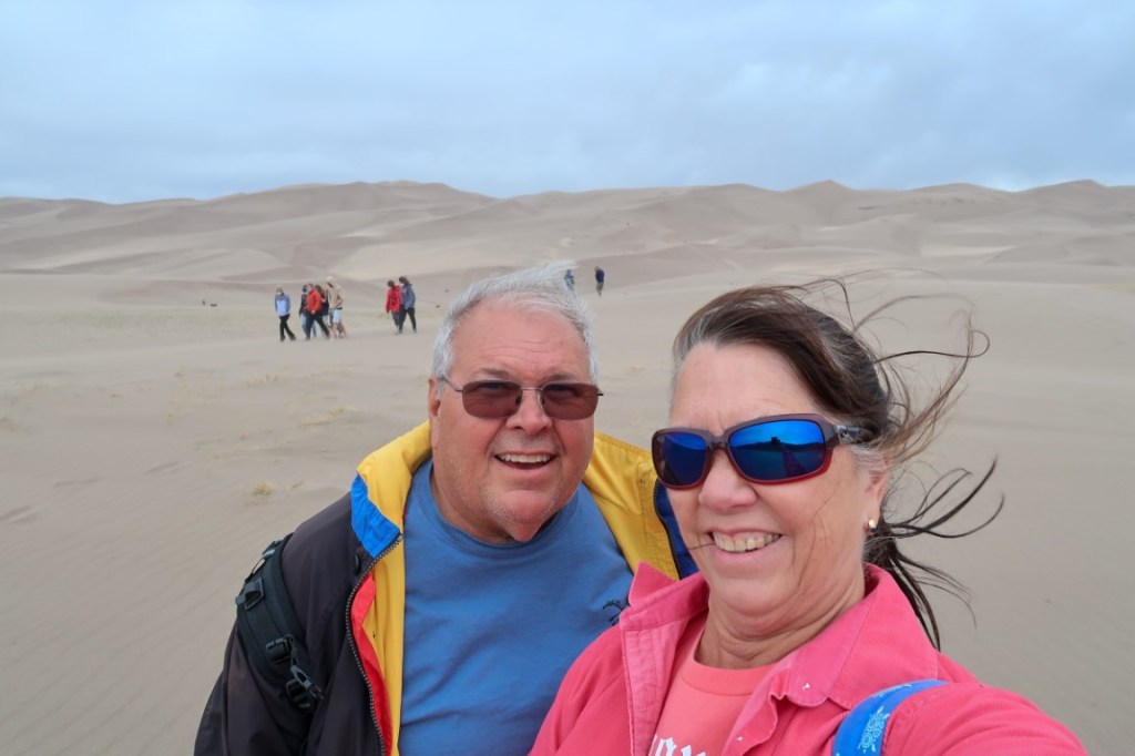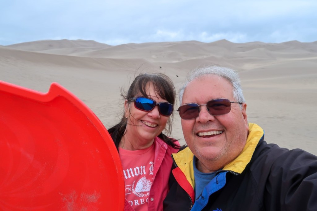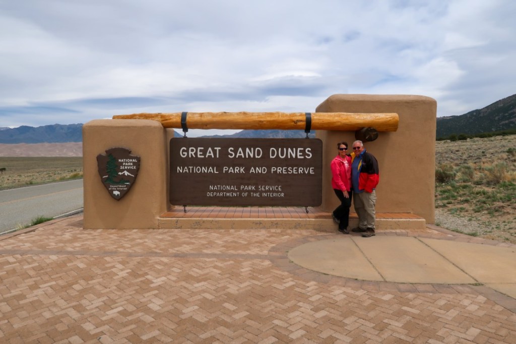 ๐๐ปโโ๏ธ Off to discover new adventures today starting with Chimney Rock National Monument. ๐ It was designated a NM in 2012, by President Barack Obama. 4,726-acres, of off-the-beaten-path, archaeological sites located at the southern edge of the San Juan Mountains in Colorado, in the Chaco Canyon. Archaeological structures and artifacts, abundant wildlife, and 360-degree views of Colorado and New Mexico from the top was worth the stop! ๐ 2,000 ancient Pueblo Indians between AD 925 and 1125, built ancient homes and ceremonial buildings here, some of which have been excavated for viewing and exploration: a Great Kiva, a Pit House, a Multi-Family Dwelling, and a Chacoan-style Great House Pueblo. Chimney Rock is the highest in elevation of all the Chacoan sites, at about 7,600 feet above sea level. Chimney Rock itself is approximately 315 feet tall. Next to Chimney Rock is Companion Rock, which is a popular nesting spot for the Peregrine Falcon. As the moon makes its lunar cycle across the sky over a period of 18.6 years, it appears in a lunar standstill between the 2 rocks for roughly 16 months. We hiked both paths, the one up to Chimney Rock was moderately challenging, unimproved trail with a 200 ft elevation gain to the top! ๐ฅพ When we made it down & back to the camper & now it was time for lunch and to head on to our next adventure! *** ๐๐ชฃ๐ What a sight to see as we got closer, for all around us were beautiful snow capped mountains but then right in front of them…… Sand Dunes! Hard to fathom this! Welcome to the Great Sand Dunes National Park and Preserve, 107,342 acres in National Park and 41,686 acres of National Preserve in the Sangre de Cristo Wilderness. ๐ We had an awesome site facing the dunes there in the NP at Piรฑon Flats Campground! This is bear country…signs on tables and we even had a metal locked box to store coolers etc in! ๐ป๐ฑ Off to the visitor center & explore! ๐งญ ***The large sand dunes are up to 750 ft tall & cover 30 sq. miles! The park has the tallest sand dune (Star Dune) in North America. The Park was originally designated Great Sand Dunes National Monument in 1932 by President Herbert Hoover, to protect it from gold mining and the potential of a concrete manufacturing business.*****๐ถ๐ปโโ๏ธ ๐ถโโ๏ธ We walked across the wide and shallow Medano Creek which runs in front of the dunes. The water was cold and when the wind would blow it caused a surge flow! (A rare phenomenon where the water flows in waves….. & we got to see it)! How cool was that! We brought our red snow saucer…..which we bought in Ohio when we picked up Ruby! Many people use sand boards and sand sleds. We paid it forward at the end of our visit and gave them to a couple who didnโt have anything to slide down on! โค๏ธ The next day we took part of the 4WD road up Medano Pass, which was an unpaved road, crossed streams and had areas of deep sand. We took a short hike up there too. Then enjoyed a nice dinner around the campfire truly amazed at how the full moon light up the entire area like a large flashlight was on! ๐ โญ๏ธ How did these dunes happen 440,000 years ago? Well the wind funnels toward the three mountain passes over 65 miles to the west. The combination of opposing winds, a huge supply of sand from the valley floor, and the sand recycling water from the creeks, are all part of the reason that these are the tallest dunes in North America.The main dunefield is moist beneath a thin layer of dry surface sand. While the top few inches of sand are blown around during windstorms, the moist sand remains largely in place. During the summer months, the sand temperature can reach 150*! ๐ฅต YIKES! ๐ณ Here in this area are bear, Bobcats, elk, mule deer, pronghorn, white tailed jack rabbits, coyotes and Abertโs Squirrel. Seven insect species thrive here and nowhere else in the world and only one mammal the Ordโs kangaroo rat , he lives in the dune field along with the great Sand Dune tiger beetle! ๐ชฒ Sorry to say we didnโt see them either! Thank God Iโd be screaming and you would of heard it 3000 miles away! So after a few days of playing in the sand, ๐ชฃ and water ๐ฆ , itโs said to say goodbye to Colorado and be responsible adults and start heading southeast towards home but we still have some more adventures lined up so next comes Oklahoma! ๐ข Sad to say goodbye to the mountains and all the new & old memories out here!