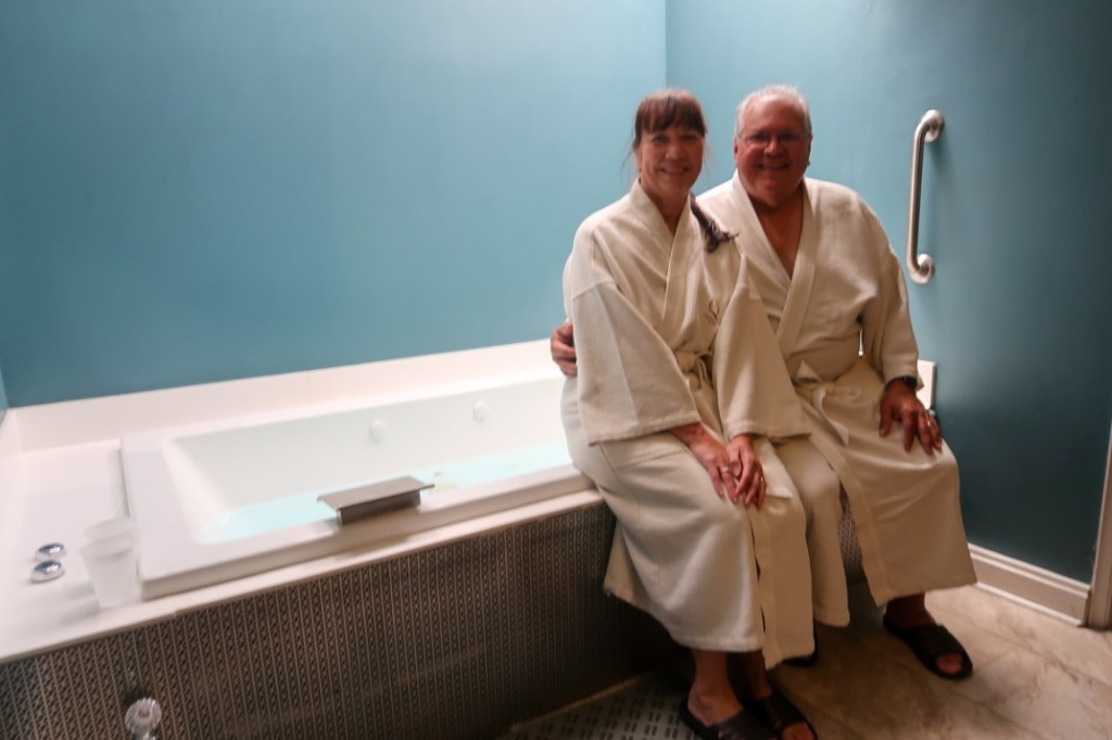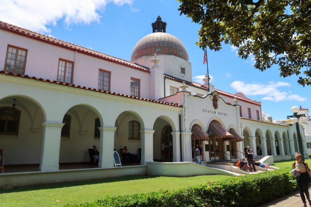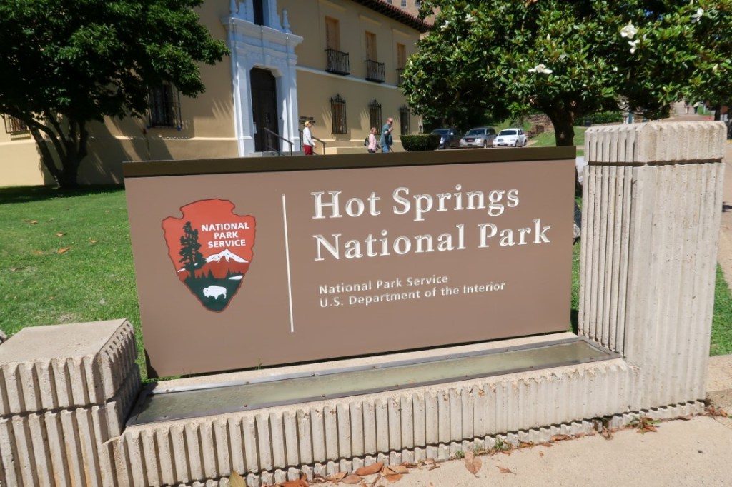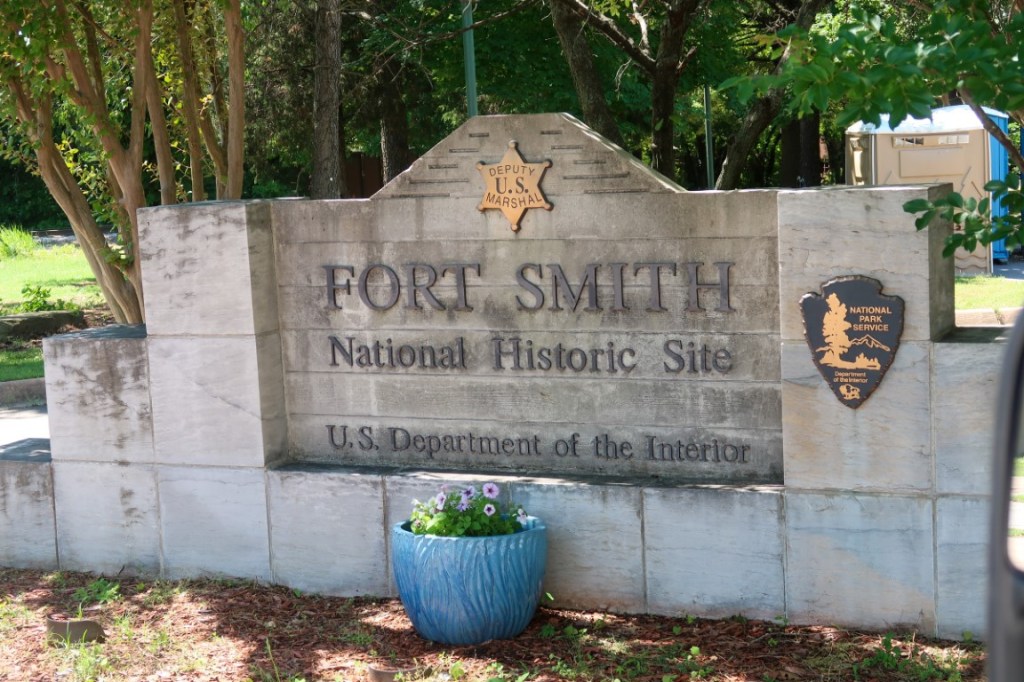 Day 60 of adventures! Got up early, packed up and on the road at 8am. Wild…. saw coyotes along side of the road! We stopped at 8:40 in Woodward at McDonald’s for breakfast & Diet Coke’s! 🥤Drove by Watonga Indian Reservation & fields of llamas🦙, cows🐄, & pigs! 🐖 IWatonga is named after Arapaho Chief Watonga whose name means “Black Coyote”. Fields & fields of hay, wheat 🌾 “ Amber Waves of Grain” as they gently blew in the breeze! Windmills, oil rigs, tree farms & lots of open land! Then something new….a big field of Longhorns…..horses & more llamas! Lots of 🎰 casinos in northern Oklahoma! ***Welcome to Arkansas! One state we’ve driven all around the past 40 years but never camped in it till now! Sticker added to our US map! 😍 Looking in my National Park Passport Book and noticed we were going to be passing Fort Smith…. a National Historical Site! 😱 So I immediately researched it and ……yup we stopped there for an adventure in Arkansas! ***Fort Smith was established as a western frontier military post in 1817, built to keep peace in the Arkansas River Valley between the native Osage and arriving Cherokee & also the center of fur trading. The city developed there. It became well known as a base for migrants’ settling of the Wild West and for its law enforcement heritage. 1st Ft Smith 1817-1824, 2nd Ft Smith 1838-1871. During the Civil War both sides used it as a Supply post. 1865 the tribes signed treaties with the federal government. Federal Court 1872-1896 had jurisdiction over Indian territory. Over 24 years hundreds of US Deputy Marshalls rode out from the court into Indian Territory to maintain law & order. Judge Isaac C. Parker “ the hanging judge”, presided over one of the largest, deadliest, and busiest federal court districts. He heard over 13,000 cases (344 were capital crimes for murder or rape)! Of the 160 he sentenced to hang, 79 faced the gallows! It was really eery to see the gallows & to walk under it! We were able to go into the Commissary Building which was built in 1838 which is the oldest standing building at Ft Smith. We then walked a few trails but it was time to get back to traveling. Arrived at Crystal Springs Campground about 6:45pm. 445 miles for the day! Beautiful, big site for Memorial Day weekend, on the lake! Unpacked & had dinner around the campfire! Beautiful night on the lake, stars above & so relaxing that we enjoyed it till 11:30pm! 🌟 Crystal Springs Campground and Recreation Area is on Lake Ouachita. There’s a marina, boat ramps, small beach area and playground here and with plenty of trails & shade from the Forest. We felt a little out of place not having a pontoon boat & I think we were the only, non locals there! Arkansas people are the friendliest people….within 15 minutes of being there everyone around us came over to say hi and checked on us every day, to see if we slept ok, needed anything or to just to say hi! 🙋🏻♀️ Next morning off to Hot Springs National Park! I had booked us our very first couples event at The Quapaw Bathhouse! 🧖♀️ 🧖♂️ Started off with robes & slippers then a private bath 🛀 in warm mineral spring water, tranquility room with peppermint cool cloths and cucumber water drinks, 30 minute Swedish massages (Tim’s first ever massage) followed by 30 minute foot conditioning & scalp massages! Then relaxation room with coffee & tea! 3 hour treat! Who wants to hike now?! Not us but we chose to hike to another bathhouse, The Superior Bathhouse, that was converted into a brewery in 2012, using hot spring water in its beers and spirits! 😍 Perfect way to celebrate such an amazing adventure! Beer, wine, beer cheese dip and a pretzel! 🍺 🍷 🥨 While there we learned that Arkansas does not sell beer, wine or alcohol on Sundays…. so we stocked up on the way back to the campground for the rest of the trip! **** Hot Springs Reservation was initially created by the United States Congress on April 20, 1832 to be preserved for future recreation. Established before the concept of a national park existed, it was the first time that land had been set aside by the federal government to preserve its use as an area for recreation. This national park is the nation’s oldest, predating Yellowstone by 40 years. The hot spring water has been popularly believed for centuries to possess medicinal properties, and was a subject of legend among several Native American tribes. It was believed the waters benefited diseases of the skin and blood, nervous affections, rheumatism and kindred diseases, and the “various diseases of women”. Incorporated January 10, 1851, the city was known in the early 20th century as the home to Major League Baseball spring training, illegal gambling, and gangsters such as Al Capone, horse racing at Oaklawn Park, the Army and Navy Hospital, and 42nd President Bill Clinton. The area was established as a national park in 1921. Since Hot Springs National Park is the oldest park maintained by the National Park Service, it was the first to receive its own US quarter in April 2010 as part of the America the Beautiful Quarters coin series. The hot springs flow from the western slope of Hot Springs Mountain, part of the Quachita Mountain range. The park includes portions of downtown Hot Springs, making it one of the most accessible national parks. The entire Bathhouse Row area is designated as a National Historic Landmark District; it contains the grandest collection of 8 bathhouses of its kind in North America, including many outstanding examples of Gilded Age architecture. The row’s Fordyce Bathhouse serves as the park’s visitor center and has been historically renovated to its original state in 1989, which was really cool to be able to walk through all 3 floors and imagine what it was like in the 1800’s. Buckstaff and Quapaw are the only facilities still operating as bathhouses. Buckstaff Bathhouse has been in continuous operation since