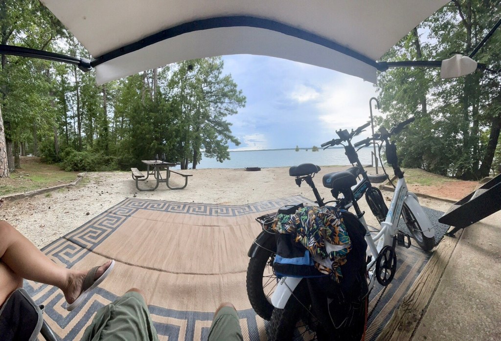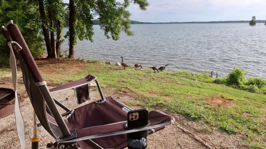 What an amazing campground! Sites are on the water, some with wooden decks and stairs going to the waters edge. We were tired of sitting so we got on our bikes and checked out every loop & down by the boat ramp! Spectacular place! Then we sat by the water at our site watching as wild geese came up to visit, birds flying all around, butterflies visiting and then 2 ospreys putting on a show right above our heads! That’s a wrap! Good night! 💤😴🌙