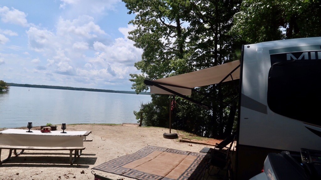 After 400 miles, 8 1/2 hours later arrive at R. Shaefer Heard Campground! This Corps Of Engineers Park (COE) is a waterfront facility on the southern shore of West Point Lake, which spans parts of Alabama and Georgia. This man-made lake has 525 miles of shoreline that provides excellent opportunities for fishing, camping, boating and other recreational activities. Surrounded by rolling fields and deep forests that display outstanding fall foliage, West Point Lake extends 35 miles along the Chattahoochee River on the Alabama-Georgia state line. The campground is forested and overlooks the 25,900-acre lake.