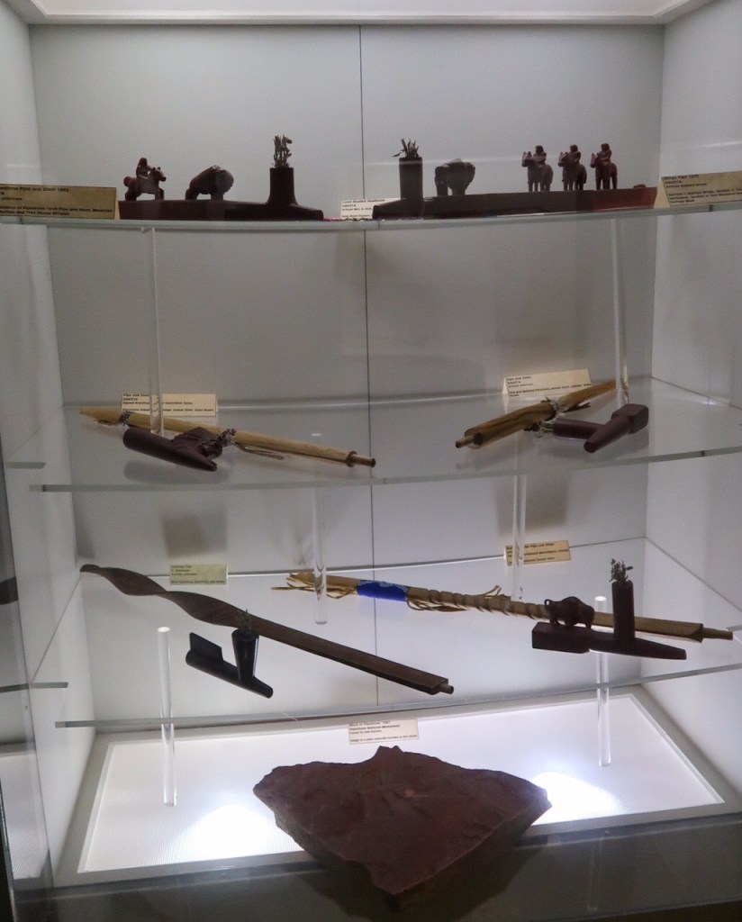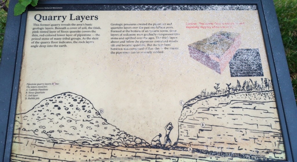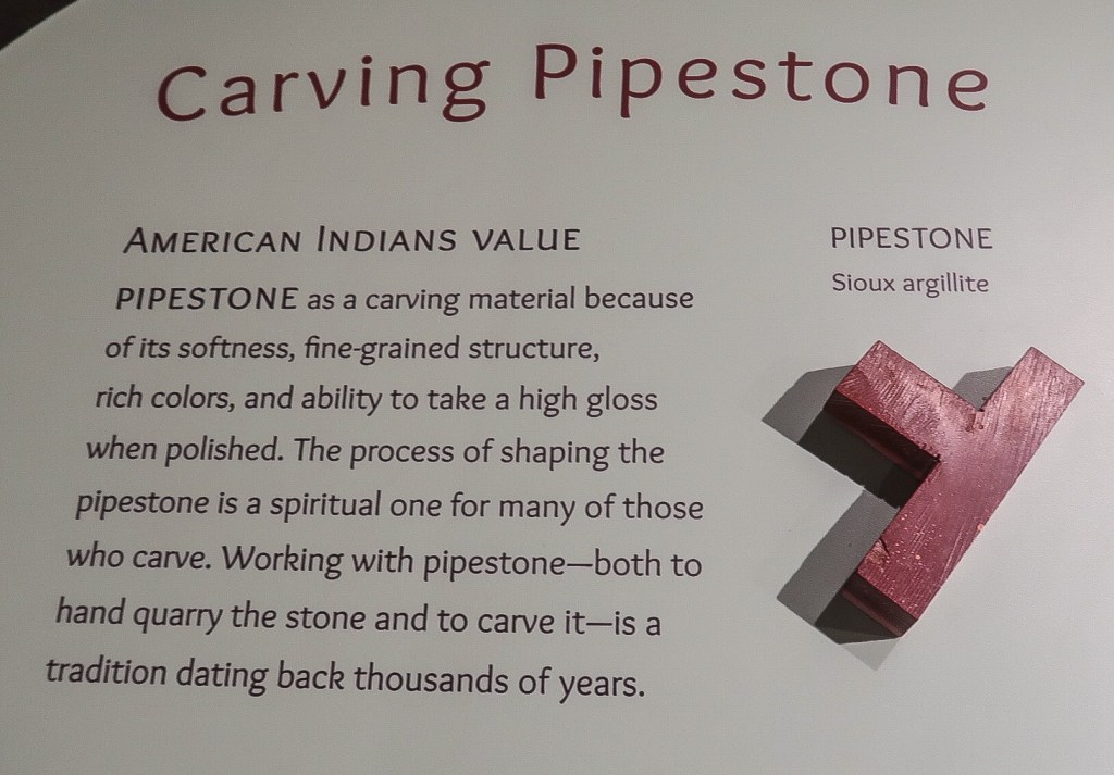 The quarries are sacred to many tribal nations of North America, and other tribes of Native Americans & were considered neutral territory in the historic past where all Nations could quarry stone for ceremonial pipes. The catlinite, or “pipestone” is traditionally used to make ceremonial pipes, vitally important to traditional Plains Indian religious practices. Archeologists believe the site has been in use for over 3000 years with Minnesota pipestone having been found inside North American burial mounts dated much earlier.