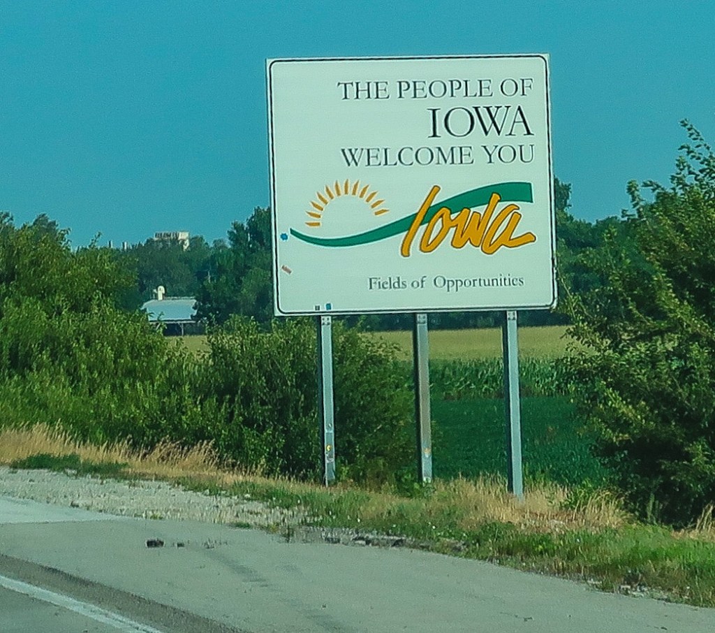 At 9:40 we crossed the Iowa border. Stopped at visitor center to walk around. 🌽 More cornfields! 🌽 Now we’re seeing even more bikers on their way to Sturgis, SD. The largest Motorcycle Rally & music Festival is held every year for 10 days and this years event is Aug. 6-14th. Many ride there, many trailered too. 🏍 🏍