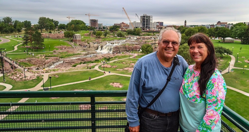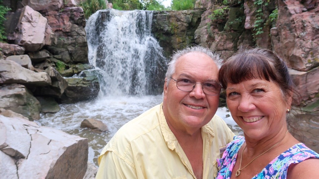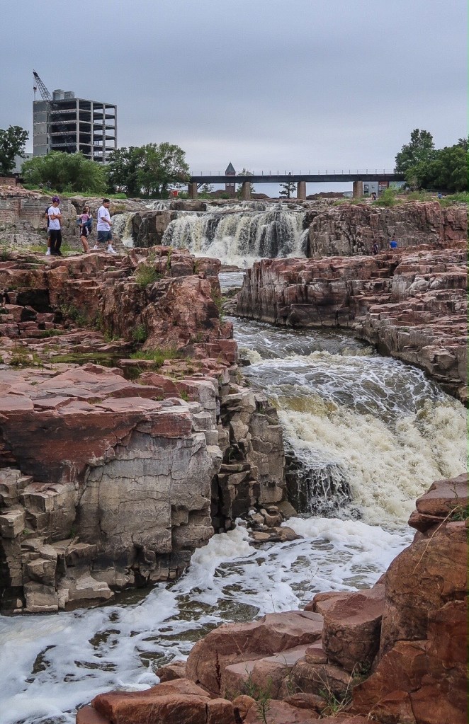 We arrived at Sioux Falls Park. Beautiful big park, hanging flowers all around visitor center. Went up the tower to take in the area from above then walked the trails all around the falls. Sioux Falls is named for the Sioux Tribe of American Indians & the waterfalls of the Big Sioux River right outside of the downtown district. It is the most populated city in South Dakota with 202,600 this year. The history of Sioux Falls revolves around the cascades of the Big Sioux River which the falls were created about 14,000 years ago during the last ice age. 🪨 It was truly an amazing area in the middle of a park!