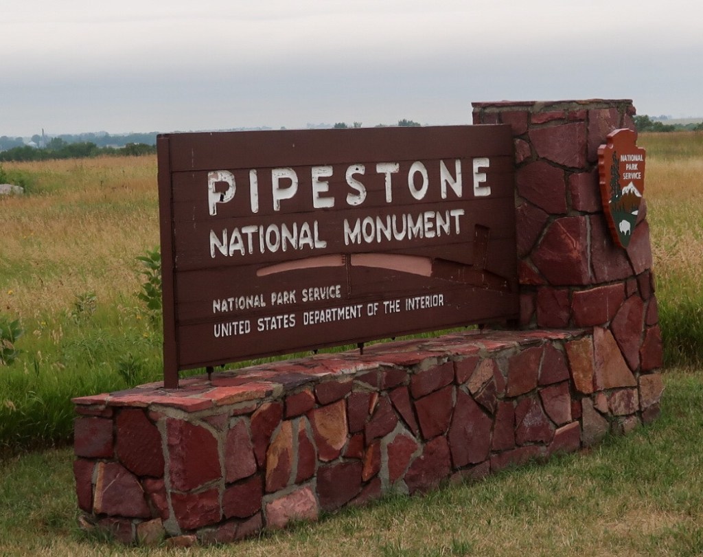 Sunday, about 1:07am it started raining and didn’t stop till about 8:30am! We started getting weather advisories of flooding around the area we visited last night! 🤦🏻♀️🤷🏻♀️So it was a relaxing morning catching up on the blog & downloading pictures. 68*, overcast with a slight breeze. It’s definitely a jeans day for sure! 😂 Made an early lunch and off to be a tourist but our first stop was… guessed it…the Golden Arches! 🥤😃 We crossed into Minnesota and went to Pipestone National Monument. Out in the middle of nowhere passing towns like Ihlen population of 63, Jasper 633, and our final destination Pipestone 4317. The whole town was closed up like a ghost town because it was a Sunday! ☹️ So to the Minnesota we go. We talked with the rangers about the area, monarch butterflies (which migrate there), I got my Junior Ranger Badge, visited all the exhibits & watched the movies in the visitor center and watched a demonstration of pipe making from pipestone.