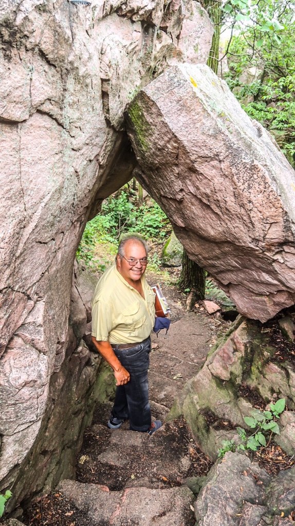 We walked the Quarry Trail & the Waterfall Trail. The Winniwissa Falls were spectacular with all the red rocks around it. Along the trail we noticed colored cloth ties (often filled with tobacco) on the trees and rocks. The represent a prayer or an offering and are placed there for spiritual purposes. As we walked the trails, we noticed a diversity of plants, even our common milkweed for the monarchs.
