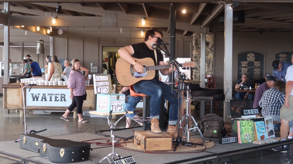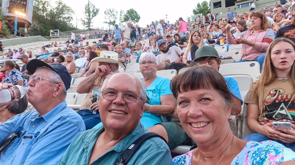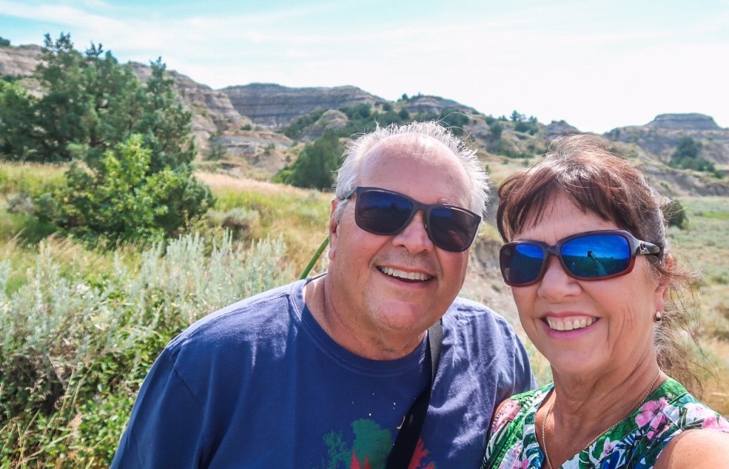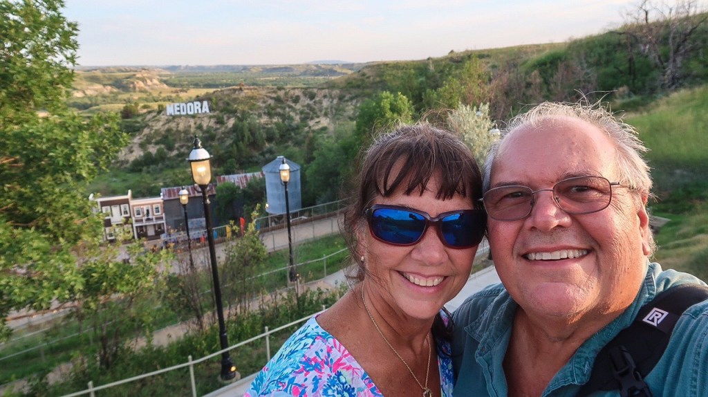 🎭🎼Also home to the popular Medora Musical, the city of Medora has become one of the most popular tourist attractions in the state. In 1965, Harold & Shelia Schafer created the Medora Musical to entertain families with a show dedicated to Theodore Roosevelt’s legacy. We ordered our tickets 3 months in advance, along with a Pitchfork Fondue Dinner. So now on day 2, we spent the day exploring the park, all the trails in our area, then had lunch in Medora at the Little Missouri Saloon! Great avocado bites and the cranberry bread made in Bismarck was phenomenal. Walked the town, in and out of shops, historic landmarks and the Rough Riders Hotel and then headed over to our dinner/ show area. Sitting on top of this mountain, a cool breeze blowing, sun-setting, a drink in hand, dinner and listening to live music…..this is living life to the fullest right here! 💗Eating steak, cooked on a pitchfork in oil was a new experience for Tim! We then walked over to where the musical amphitheater was. It was a lot of stairs down to the stage but as we looked out at the Medora sign, there were 2 elks standing on top of the mountain. Breathtaking moment. Our seats were center stage row 3 which was amazing! The performers & talented musicians put on a great show honoring Theodore Roosevelt’s life and his love for the area. Highly recommend dinner & the show if you visit the area.