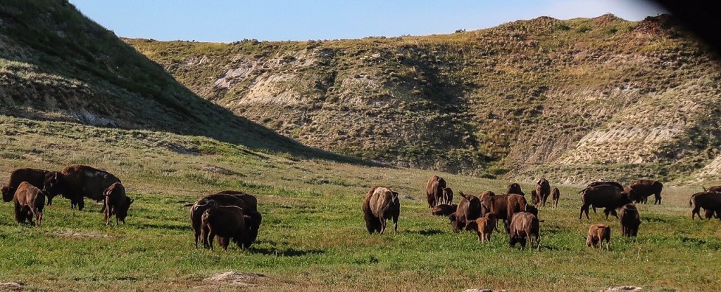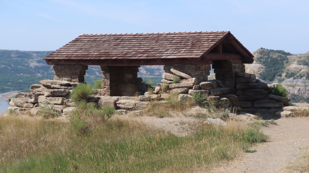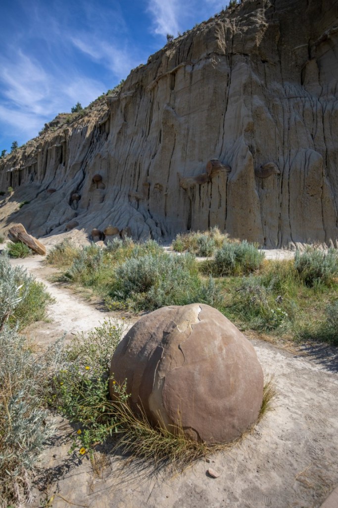 *****So on our 3rd day , we planned a full day of adventures. Starting with driving up to the North Unit part of the park. Bison all over the hills. Stopped to hike and see the Cannonball Concretions, which are round geological rocks. Stopped at all the scenic pull offs. River Bend Overlook was spectacular. We hiked out to a viewing deck, then an overlook shelter, then ending up by the edge of a cliff to see the Missouri River winding around the area and even saw a large herd of bison in the water. Beautiful clear blue skies made for a picturesque setting. At the end of the park is Oxbow Overlook to see the rim of the badlands.