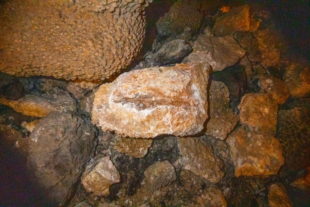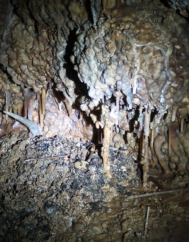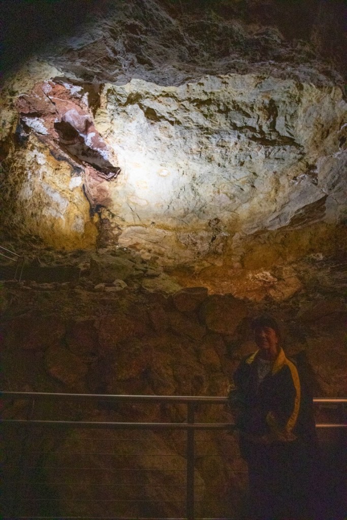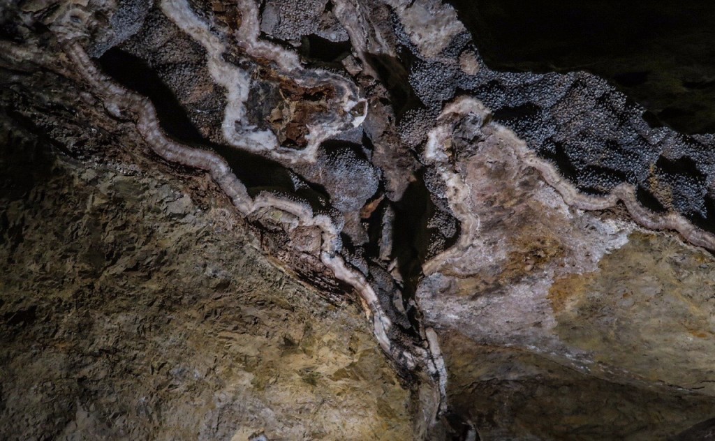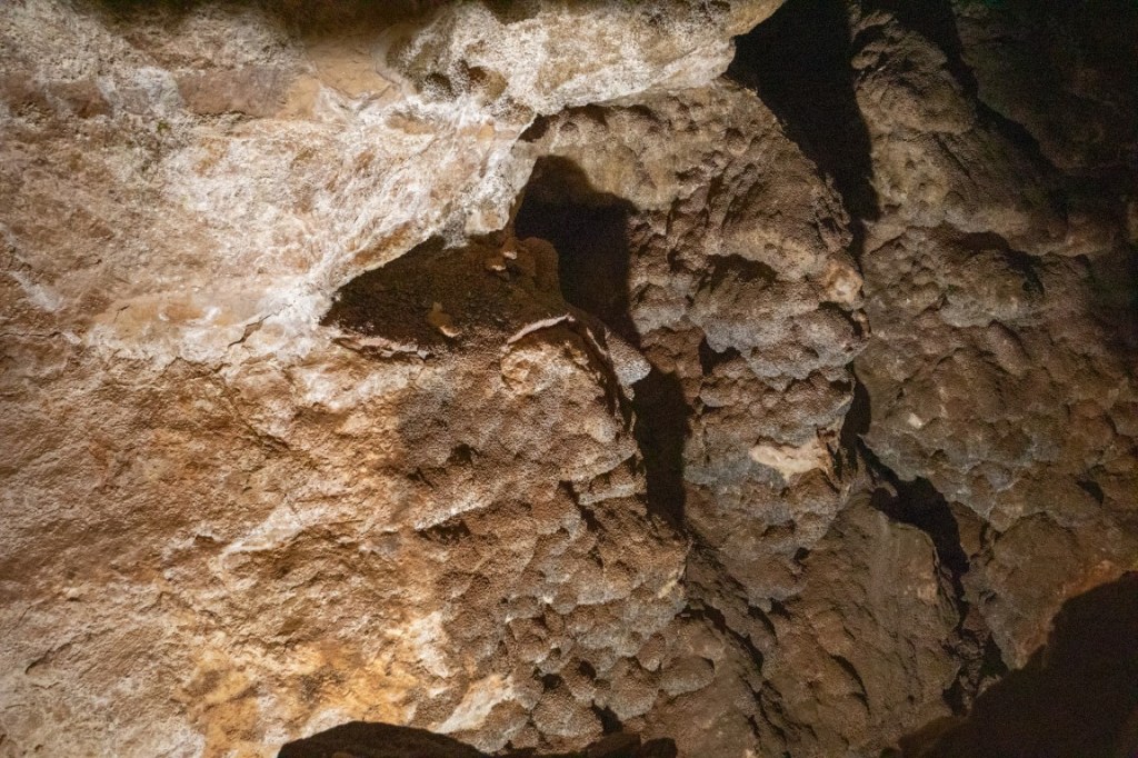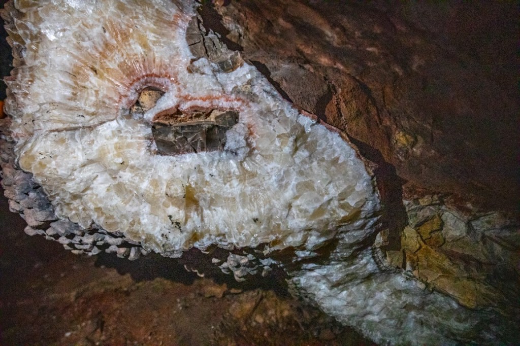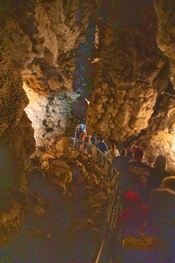 During cave development and afterwards, speleothems & speleogens formed, including the “jewels” or spar. We also saw stalactites, stalagmites, flowstone, cave popcorn, boxwork (like in wind cave), Draperies (looked like jellyfish), frostwork & gypsum flowers! And more but I can’t remember all the names of them! 😮 We saw a very rare formation called a hydromagnesite balloon. Those are created when gas of an unknown source inflates a pasty substance formed by the precipitation of the magnesium carbonate hydroxide mineral. We also saw a large formation of Cave “Bacon” (flowstone), a 6 ft piece! We finished about 12:20pm.