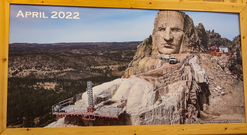Our next adventure turned out to be such an eye opening experience for both of us! We visited Crazy Horse Memorial! This was so much more then another carving on a mountain! We learned so much about the history of the area, the cultures of over 300 Native Nations and the life of Korczak & Ruth and their 10 children. We were able to s a view of their log cabin and his studio on the property. Visited the visitor center, exhibits, watched a 15 minute movie, the Indian Museum of North America (which had a large collection of art & artifacts), and listened to an Indian flutist. The scale model of Crazy Horse is 1/34th size of the full size.