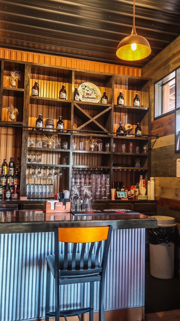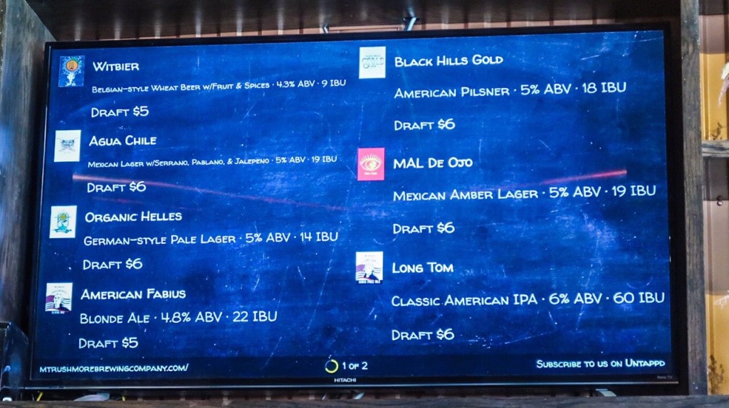 🍻 Ahhhh … found Mt Rushmore Brewing Company. Malt from small farmers and maltsters in North Dakota, and hops from family-owned and cooperative farms in the Midwest and Pacific Northwest. Pictured on the 4 fermenters are… American Fabuis/Blonde, Long Tom/IPA, Trust Buster/Scorrish Export, & Rail Splitter/Porter. We had a drink and appetizers then hit the streets again and came upon Custer Beacon! Live music going on brought us in! ** “The Custer Beacon is equal parts scratch-kitchen restaurant, craft beer and wine bar, dynamic gathering space and premier live music venue featuring local and national talent, indoor/outdoor patio, creative dining options, and a selection of classic yard and table games. The Beacon’s lively warehouse space in downtown Custer is perfect for large groups, families, pets, and travelers!”