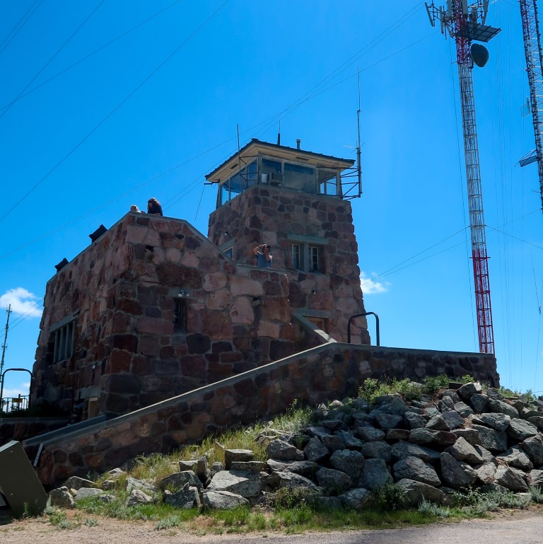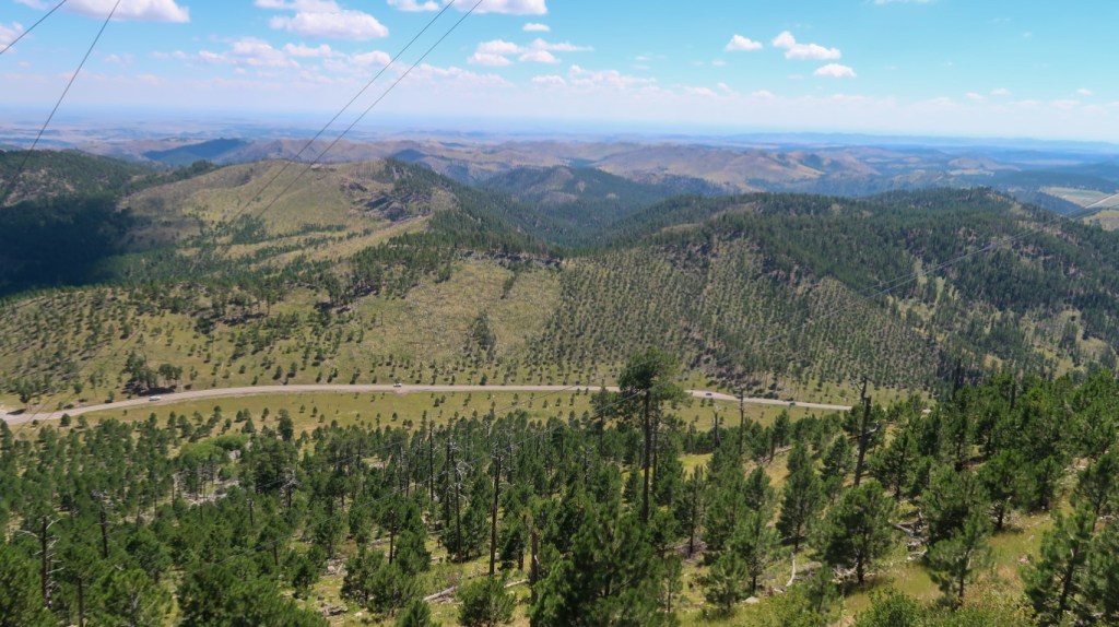 Today was our day to just explore the area. We started our adventure around 11:30. Drove up to Mount Coolidge Fire Tower. What an intense drive for the gravel road was narrow & winding up the mountain with sheer drop offs … On My Side! 😮 We could see for miles & miles all around us and we could see The Needles, Mt Rushmore and Crazy Horse from the summit.