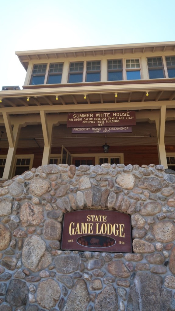 Next adventure of the day was at the State Game Lodge to find where we were having dinner tonight. The State Game Lodge is a gracious native stone and wood lodge built in 1920 and listed on the National Register of Historic Places. The Lodge was the 1927 Summer White House by President Calvin Coolidge & visited by President Dwight D. Eisenhower in 1953. There are 7 original historical lodge rooms that were occupied by President Coolidge & Eisenhower and their staff. We walked through the beautiful lobby, visited the gift shop and enjoyed the view from the historical front porch.