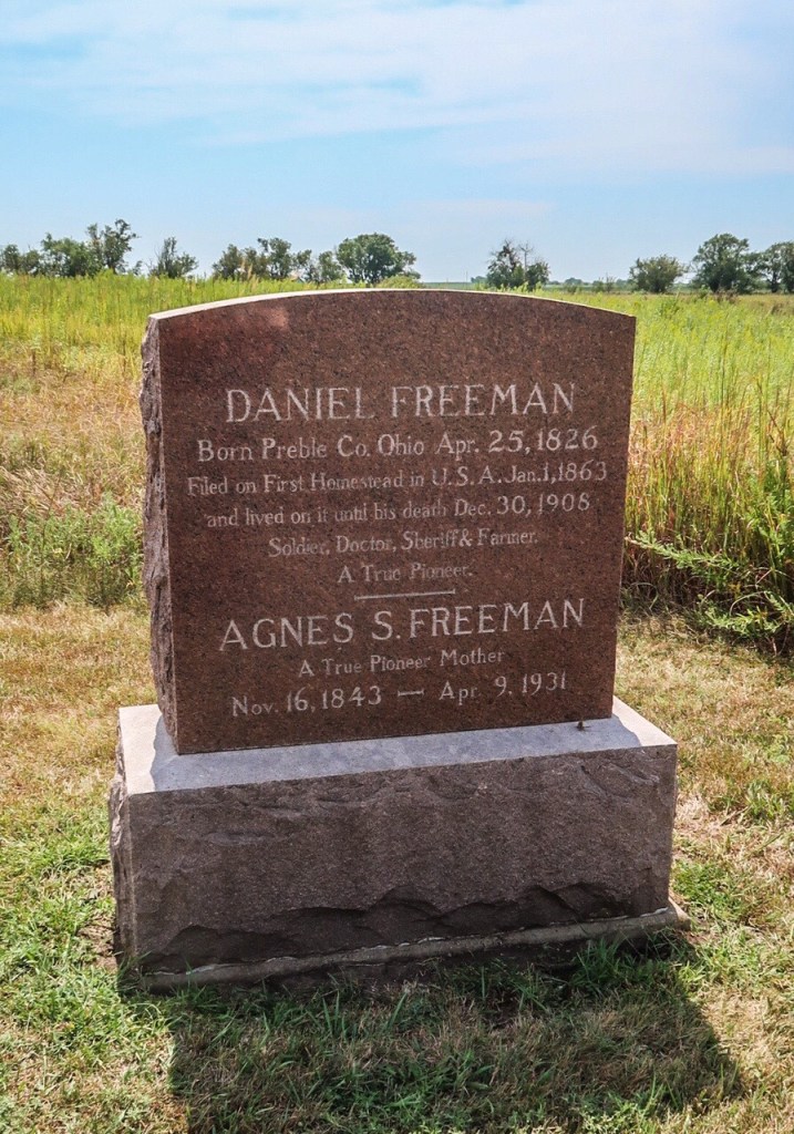 Daniel Freeman (April 26, 1826- December 30, 1908) was an American homesteader & Civil War veteran. He was recognized as the first person to file a claim under the Homestead Act of 1862. His log cabin, The Freeman School & the family graves are on the property.