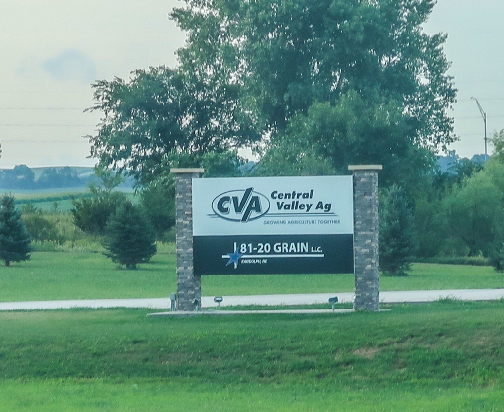 Noticed fields with Central Valley Ag signs so I had to look up what this meant so….Its a farmer-owned cooperative in Iowa, Kansas, & Nebraska. Central Valley Ag is focused on grain, feed and energy, which has 90 locations across Iowa, Kansas, and Nebraska. By using innovative technologies in providing its products and services, CVA Coop continuously strives to maximize the potential benefits for its clients. There you have it! 😆