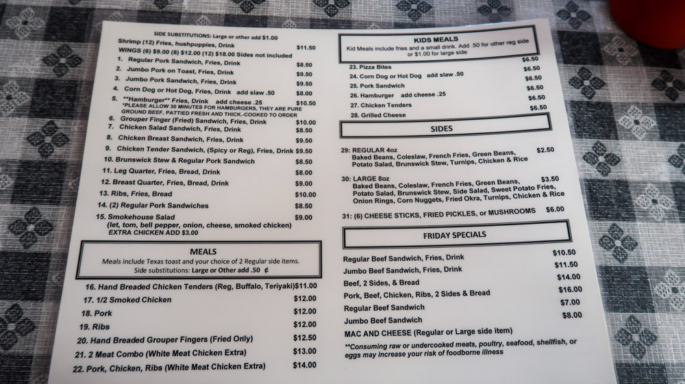 Earlier we had passed a bbq place that was packed so that’s where we’re headed for lunch. Sweet T’s Smokehouse – “Best BBQ in Town” … open Monday-Friday 11am-2pm. Can’t say enough about this place. The owner Theresa has a gold mine! She and her staff are very friendly, fast service and everything was delicious! It’s a small place where everyone knows each other. So we tried the Brunswick Stew, pulled pork, fries, meat platter had ribs, chicken, pulled pork, also tried fried okra and corn nuggets! All spectacular! 😋 Then dessert….a local makes pies for the restaurant and yes I took home a slice of Almond Joy cake. So yummy! Then stopped off at Walmart to pick up supplies & jugs of water. Went back to park and rode over to other side & did a trail. State Parks are known to have lower priced laundry machines and this didn’t disappoint me! Only $1.00/washer & dryers. Only had 1 load so all caught up. Only 30 miles today! Relaxed the rest of the night! That’s a wrap!
