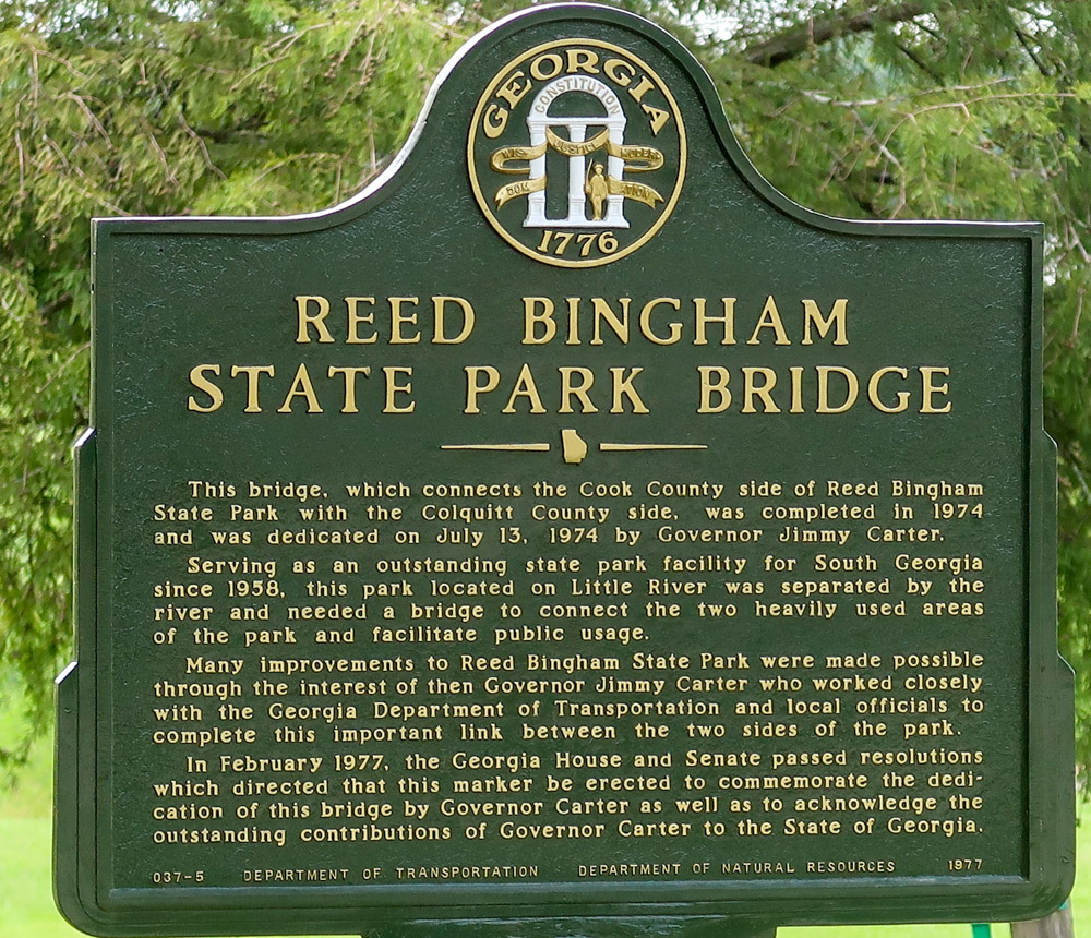 Reed Bingham State Park is a 1,613 acre park in southern Georgia. 🍑 What a great family park! The park surrounds a 375 acre lake and people were out fishing, boating, waterskiing, & kayaking! Pretty overflow dam too. There’s lots of hiking trails all over…3.5 mile long Coastal Plains Nature Trail, miniature golf, swimming area, playgrounds, pavilions, bike trails and 2 big camping loops! Nearly 80 percent of the Coastal Plain’s plant community can be found along the park’s Coastal Plain Nature Trail, making this park’s habitat some of the most diverse in the country. Lots of wildlife here! Lots of gopher tortoises, bald eagles, squirrels, indigo snakes, alligators & buzzards! The park became part of a major conservation area to restore Longleaf Pines in the southeastern US.