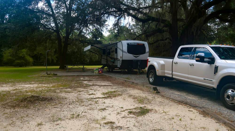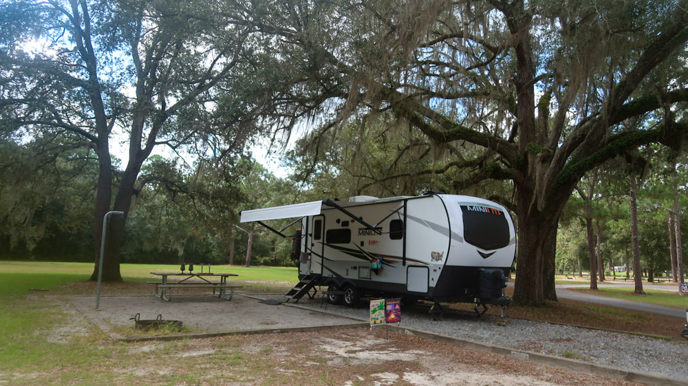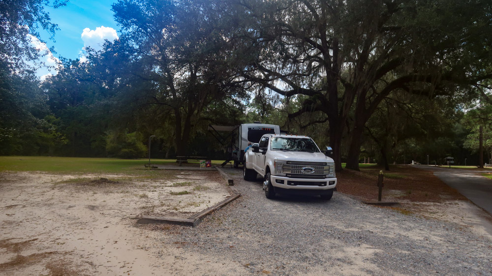 6:00pm 🎉🎉🎉🎉 We made it! Reed Bingham State Park! The registration office is closed! No one is around! So we went to our site…loop 2, site 27 and set up. Beautiful big Oak trees with moss hanging. Site was full of crazy 🐜 ants, so Tim sprayed the area since we’re here for 2 nights! Happy hour is well deserved, then made dinner and relaxed till we fell asleep. 💤