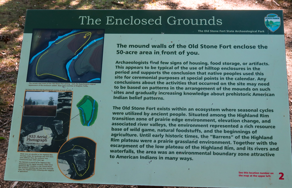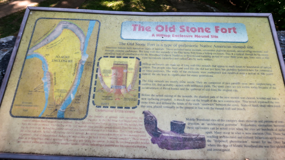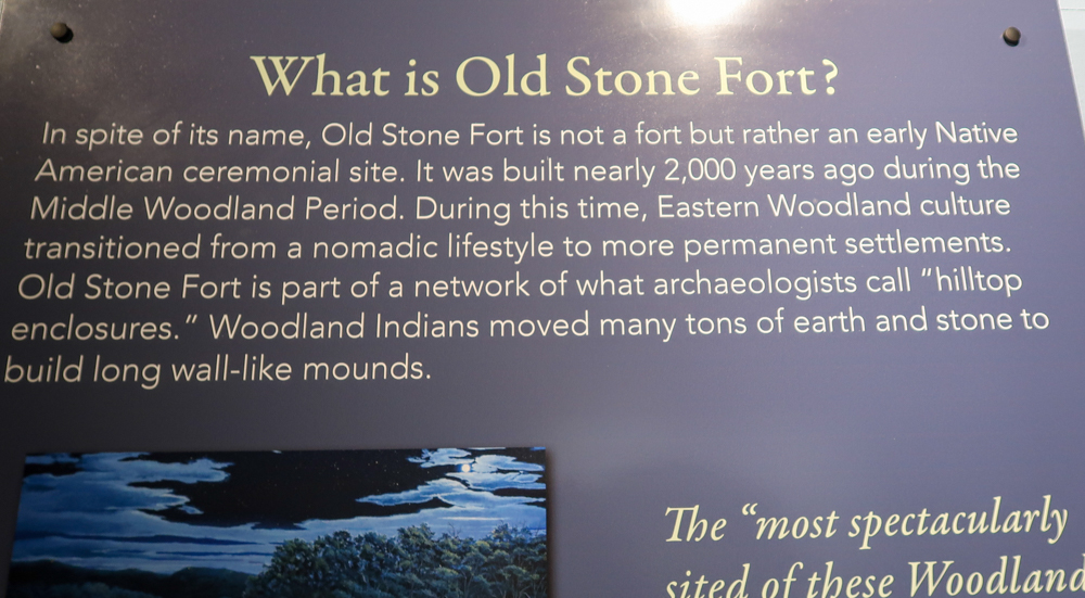 The Old Stone Fort was built during the Middle Woodland Period, 1,500-2,000 years ago. Native Americans used the area continuously for about 500 years, eventually leaving it abandoned. By the time European settlers arrived, it was unclear of what the area had been used for which resulted in it being misnamed as a fort. In 1966, the state of Tennessee purchased 400 acres of the Chumbley estate as the core of what is now Old Stone Fort State Archaeological Park.