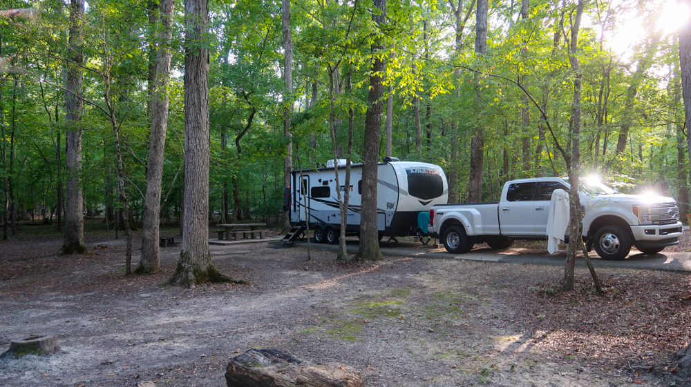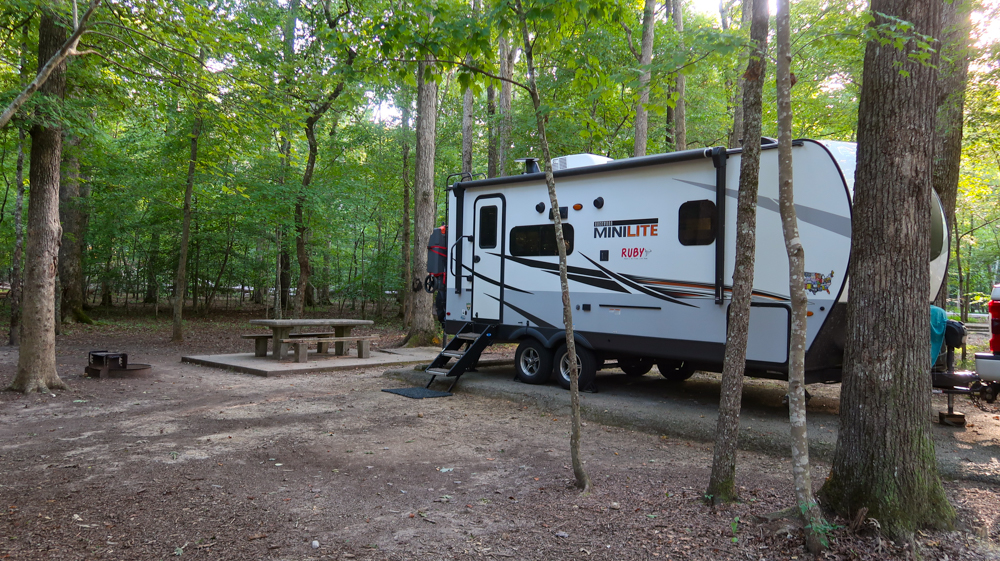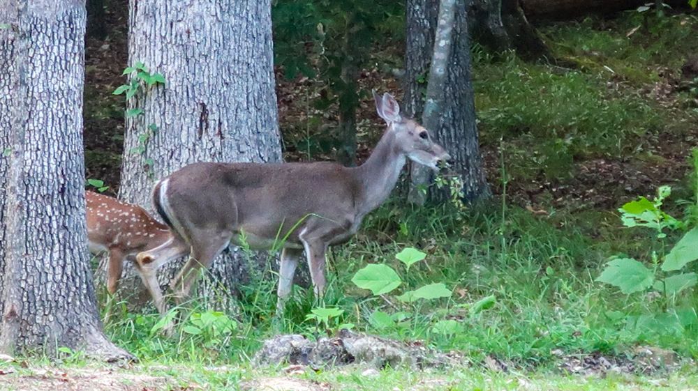 We arrived at Old Stone Fort State Park campground, site 18. Big beautiful site. Electric & water! Set up then walked our loop. 🦌 Lots of deer & fawns all over the campground. They got very close to our campsite. Grilled fish for dinner then caught up on my journal & blog.