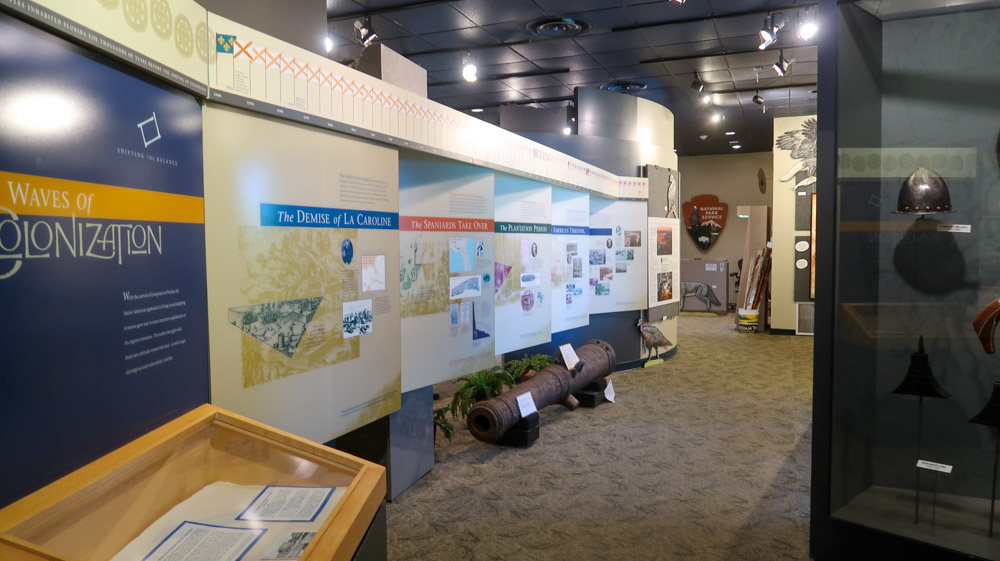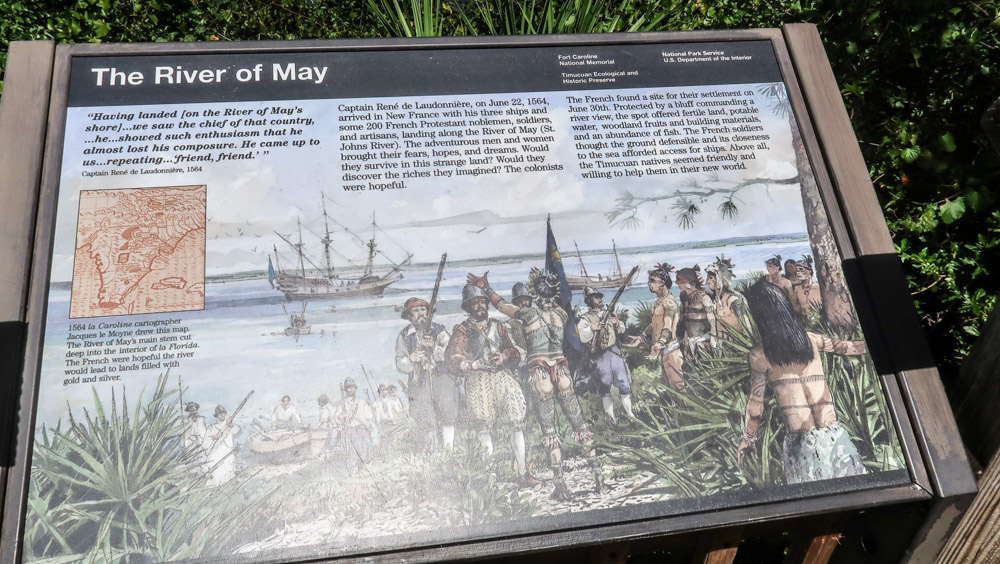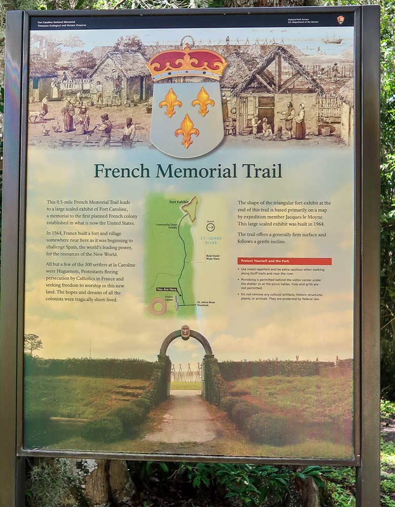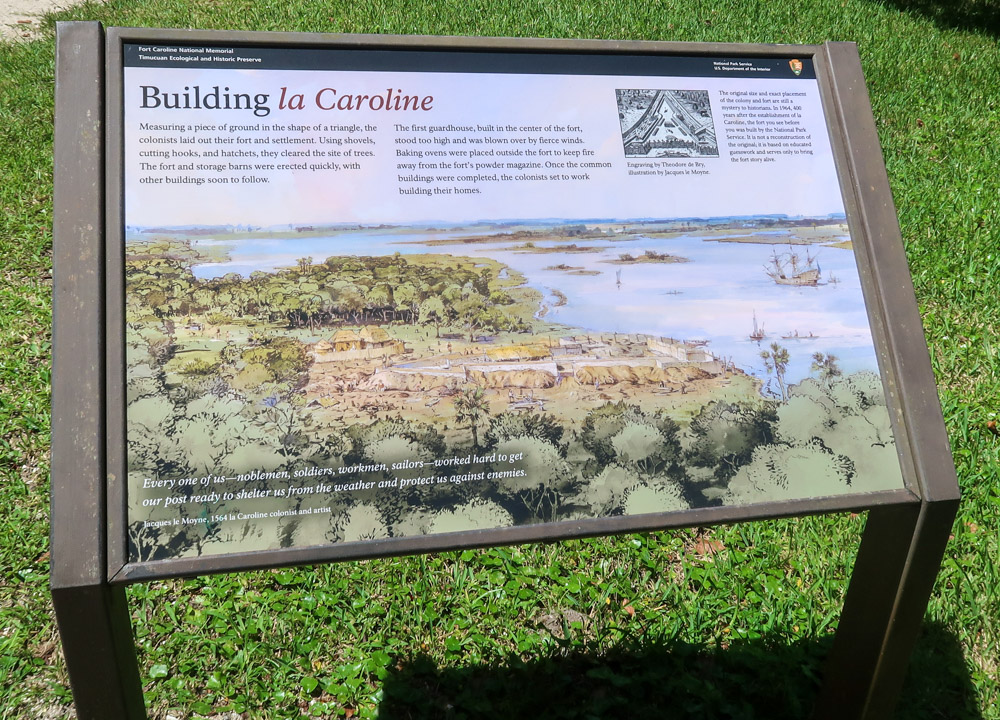 In 1953 the National Park Service established the Fort Caroline National Memorial along the southern bank of the St. John’s River near the point that commemorates Laudonnière’s first landing. 128 acres. This is generally accepted by scholars as being in the vicinity of the original fort, though probably not the exact location. The memorial is now managed as a part of the Timucuan Ecological & Historical Preserve, but it is also a distinct unit under administration of the National Park Service.