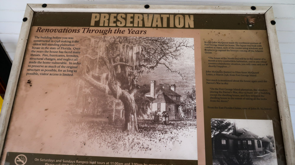 The plantation was originally 1,000 acres, most of which has been taken over by forest; the structures and grounds of the park now comprise approximately 60 acres. Evidence of Pre-Columbian Timucua life on the island, as are the remains of a Spanish mission named San Juan del Puerto. Under British rule in 1765, a plantation was established that cycled through several owners while Florida was transferred back to Spain and then the United States. The longest span of ownership was under Kingsley and his family, a polygamous and multiracial household controlled by and resistant to the issues of race and slavery.