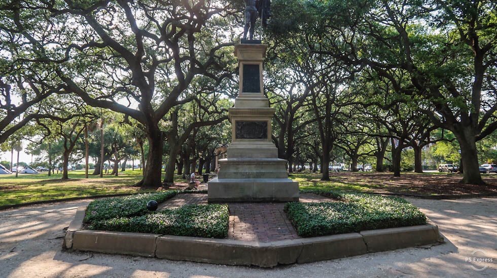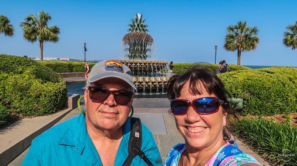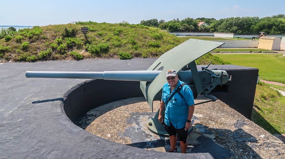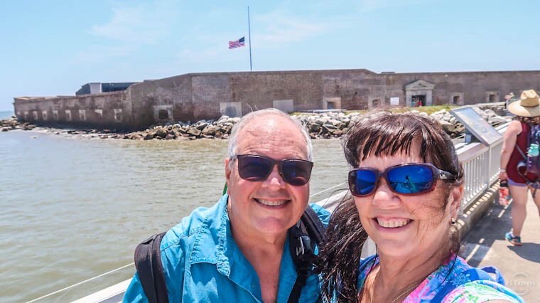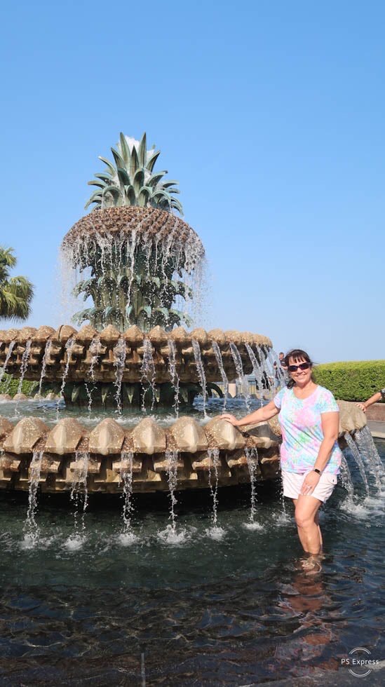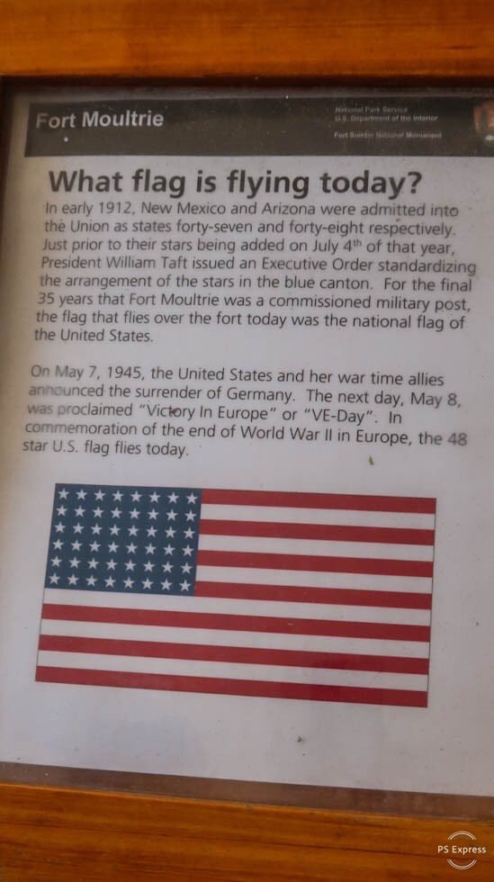 We toured Fort Sumter & on the boat ride back we had a snack of fruit, peanut butter crackers and water that I packed. Now we’re ready to keep going! Next we toured the USS Yorktown aircraft carrier. Ironically Tim & Daniel spent a night on this ship during boy scouts. So cool to walk through all the levels and to see the planes on the upper deck but I sure couldn’t be on the ship for months on end. I’d go stir crazy big time and would have a hard time getting my steps every day! 😱 Off now to find a McDonald’s for a Diet Coke! 🥤 We drove to Sullivans Island to visit Fort Moultrie, the batteries there & the lighthouse. The Charleston Light was completed in 1962 & is the last major lighthouse built in the US. A triangular structure with steel girders for the framework, aluminum alloy for siding, a service elevator, withstands winds up to 125mph. The lights can be seen 27 miles offshore. Now off to downtown Charleston. We got lucky and found a spot by market place that only had an hour left before free parking, and yes Tim took the chance! A dually is no easy feat to parallel park downtown! Strolled through the market then walked down to the water and found beautiful Waterfront Park. Old oak trees covering the walkways that had bench’s everywhere to relax and a lot of water fountains. ⛲️ I couldn’t resist taking my sneakers & socks off and going into the last one! 😇🤣 We then walked down Rainbow Row to all the beautiful colored mansions. Then strolled through White Point Gardens and down Church Street admiring homes, gardens, door knockers and historical markers. Stopped at Poogans Porch where we had the most amazing appetizer, drinks & dinner. Southern food…green fried tomatoes,BBQ Mahi & Shrimp & Grits.