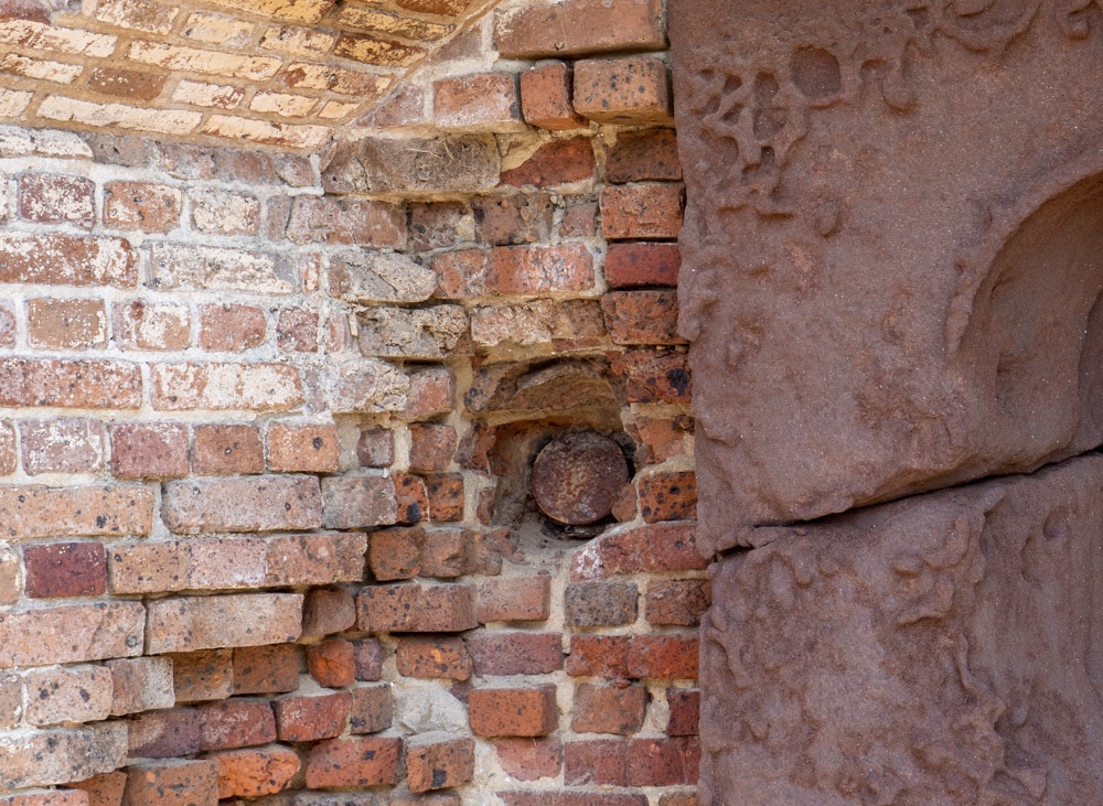 In 1827, engineers performed measurements of the depths and concluded that it was a suitable location for a fort. Construction began in 1829. Seventy thousand tons of granite were transported from New England to build up the artificial island. By 1834, a timber foundation that was several feet beneath the water had been laid. However, the decision was made to build a (stronger) brick fort. The brick fort is five-sided, 170 to 190 feet long, with walls five feet thick, standing 50 feet over the low tide mark. Although never completed, it was designed to house 650 men and 135 guns in three tiers of gun emplacements.