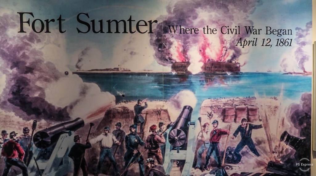Fort Sumter is notable for two battles, the American Civil War April 12, 1861, when South Carolina Militia artillery fired from shore on the Union garrison. These were, both sides agreed, the first shots of the war. The bombardment continued all day, watched by many happy civilians.