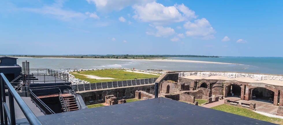 Fort Sumter is a sea Fort built on a sand bar protecting Charleston from naval invasion – site of the first shots fired in the Civil War. Since the middle of the 20th century, Fort Sumter has been open to the public & operated by the National Park Service.