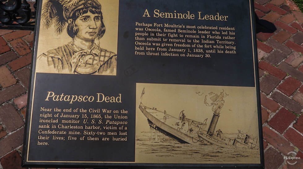 Fort Moultrie is a series of fortifications on Sullivans Island built to protect the city. The first fort, formerly named Fort Sullivan, built of palmetto logs, inspired the flag and nickname of SC as “The Palmetto State”. The fort was renamed for the U.S. patriot commander in the Battle of Sullivan’s Island, General William Moultrie. During British occupation, in 1780–1782, the fort was known as Fort Arbuthnot. The low-laying coastal structure, which encompasses a large parcel of Atlantic Ocean bordering beaches on the southern tip of Sullivan’s Island, began as a Revolutionary War defense before being transformed into a secondary Confederate stronghold during the Civil War.