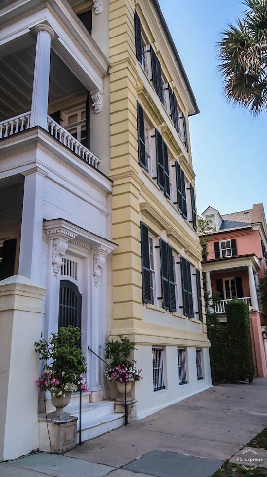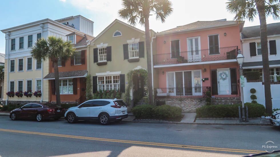 Rainbow Row is composed of thirteen different buildings, most of which share party walls with their neighboring houses. The name Rainbow Row was coined after the pastel colors they were painted as they were restored in the 1930s and 1940s.