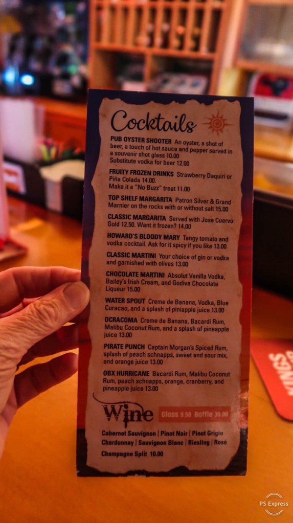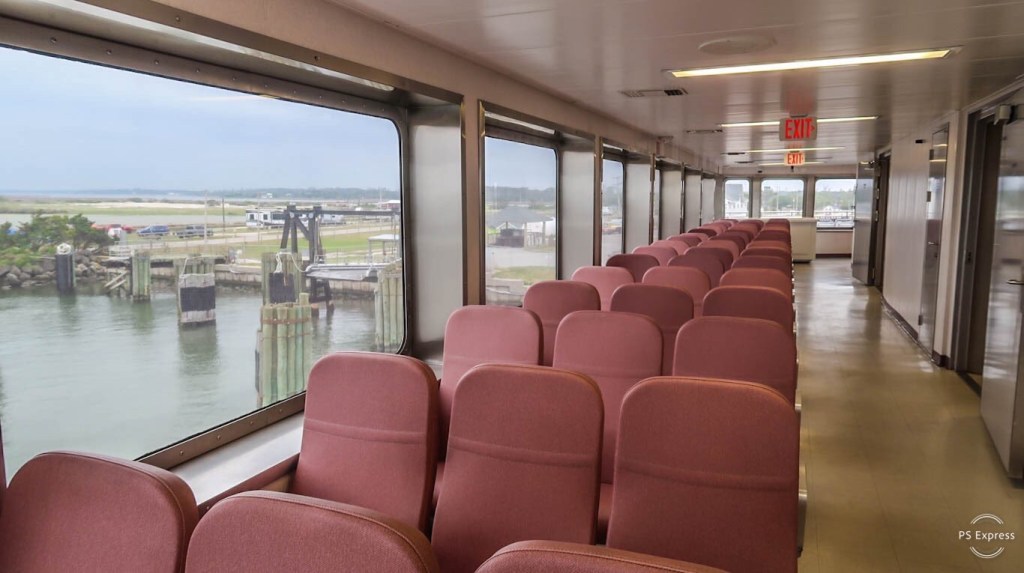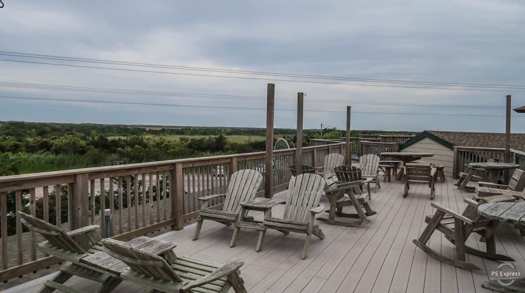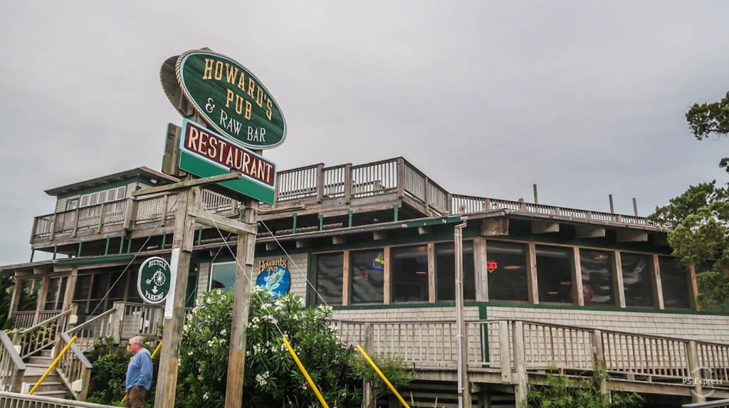 Boarded at 10:30am, followed behind another smaller trailer and then there’s another directly behind us….we’re right up against the center wall. Like little kids, we got out and went up stairs, first in the front, then the back then settled down in the passenger lounge at a table. 2 1/2 hours later we drove off the ferry to Ocracoke Island. Our row was last to exit so it was so cool watching everyone getting off along with all the sounds…especially all the birds flying overhead.