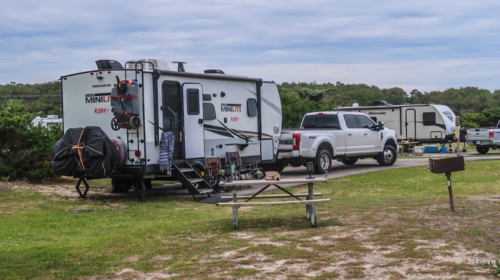 7am – 70* Cloudy, overcast day! Ruby is filled up, flushed and ready for her first Ferry ride & to boon-dock on Ocracoke!