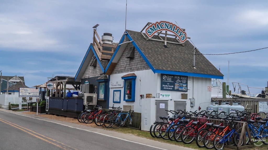 Okracoke is Beach vibe village that has really grown since our last visit. Shell shops, restaurants on the water, ice cream shops, beach shops, lots of bike and golf cart rental shops, condos, rentals, etc. 🏖️