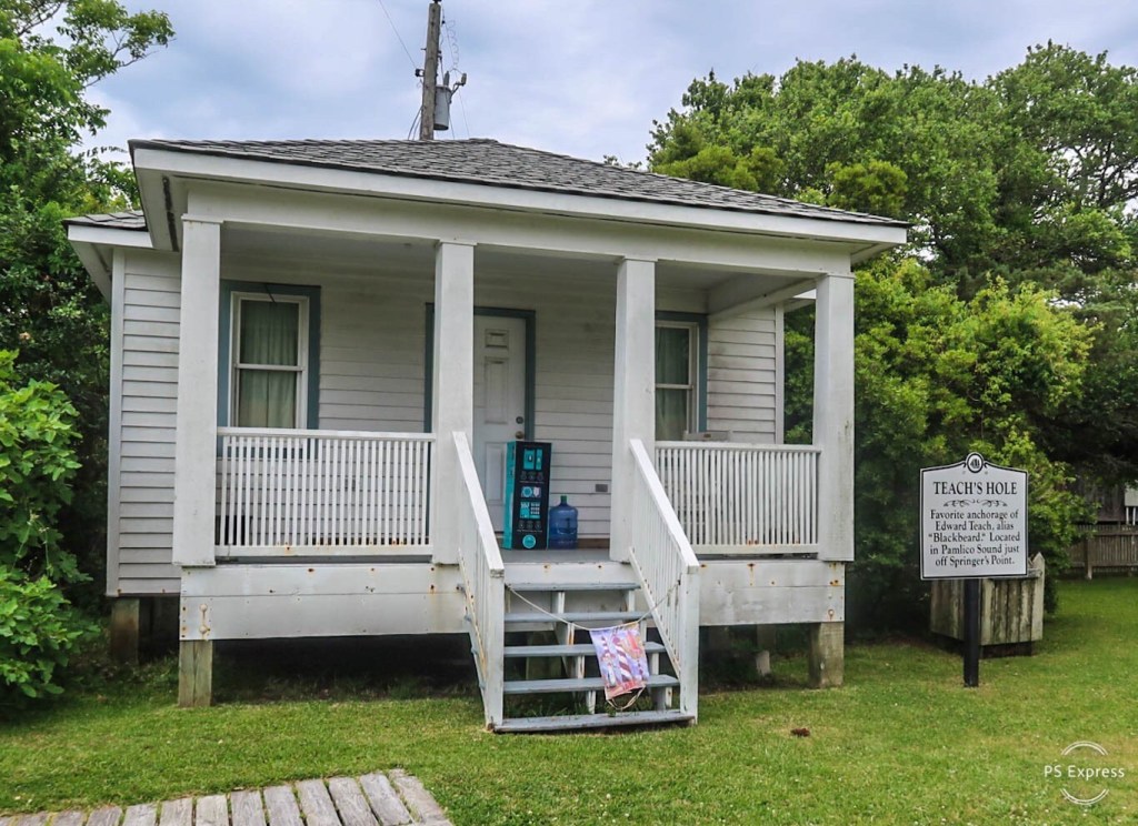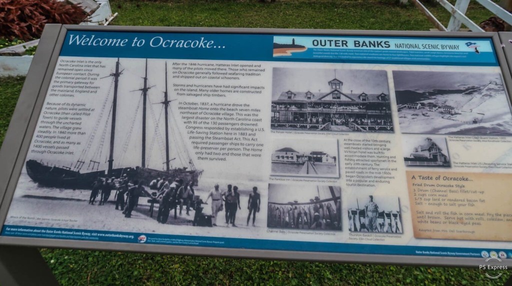 Ocracoke – unincorporated town located at the southern end of Ocracoke Island. North Carolina’s Outer Banks. Elevation 3 feet! Only 16 miles long & 3miles to less than 1/2 a mile wide. The population was 948 in 2010 & in the 2020 census, the population had dropped to 797 people. No bridges connect Ocracoke Island to the mainland, ferries are used to connect to Hatteras Island, Cedar Island and to the mainland at Swan Quarter. The economy of the island is driven by tourism and commercial fishing. A unique dialect of English, known colloquially as the Hai Toider accent, is spoken in Ocracoke, but mostly American language is spoken. Ocracoke Island was the location of the pirate Blackbeard’s (Edward Teach) death in November 1718. Though it saw no direct military action, Ocracoke was the site of a Confederate fort during the US Civil War, as well as several naval battles that occurred off the coast of the island during WWII, the remains of British sailors killed during these engagements occupy a small cemetery on the island