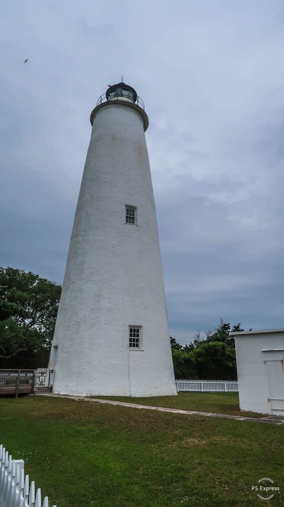 Ocracoke Light was built in 1823 by Massachusetts builder Noah Porter. The lighthouse stands 75 feet tall. Its diameter narrows from 25 feet at the base to 12 feet at its peak. The lighthouse was built to help guide ships through Ocracoke Inlet into Pamlico Sound.