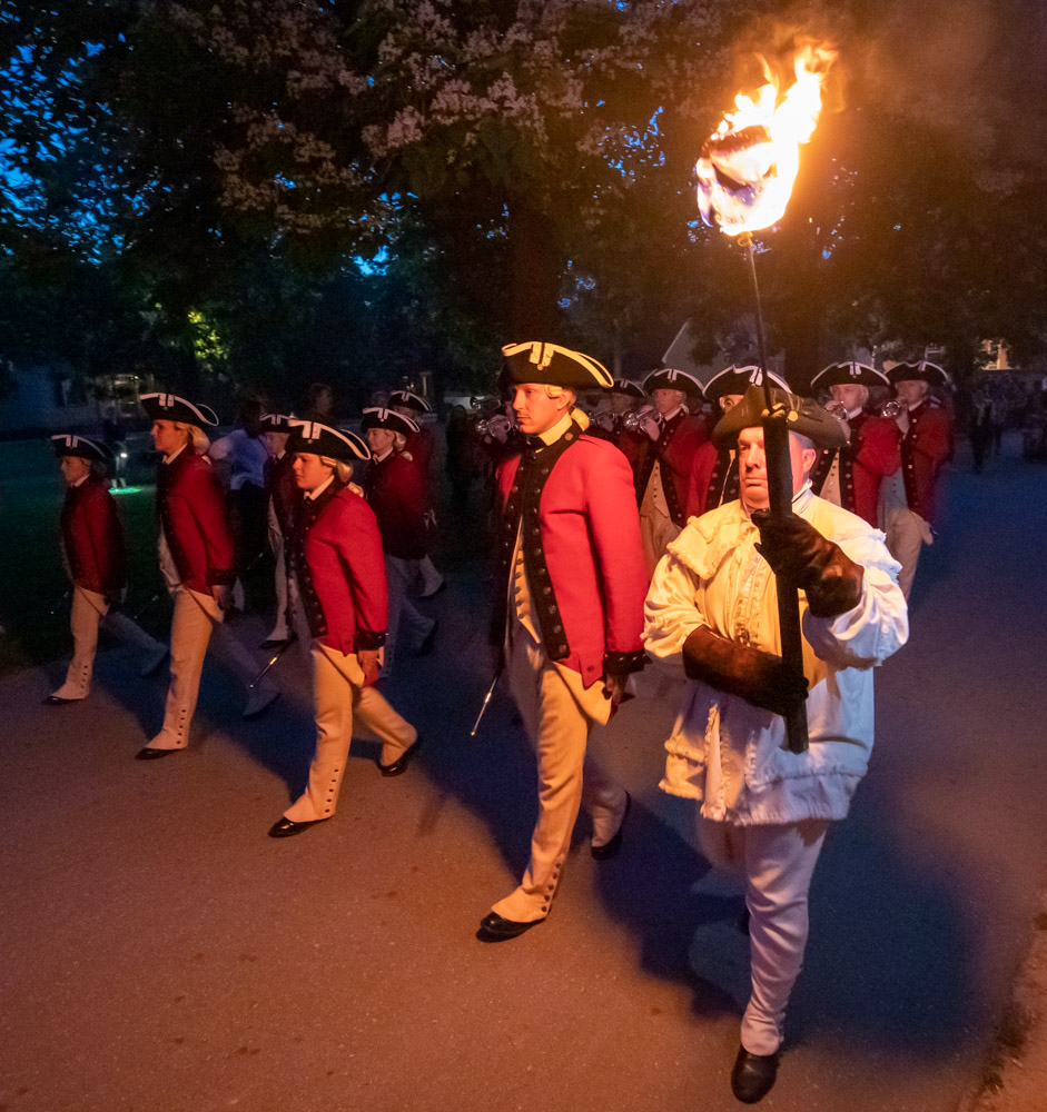 Next – found a place on the Palace Green to watch the night time parade with all the Fife & Drummer Group. This was amazing for each group was led by someone with a torch. What a grand event to end our day. 🥁🪈🥁