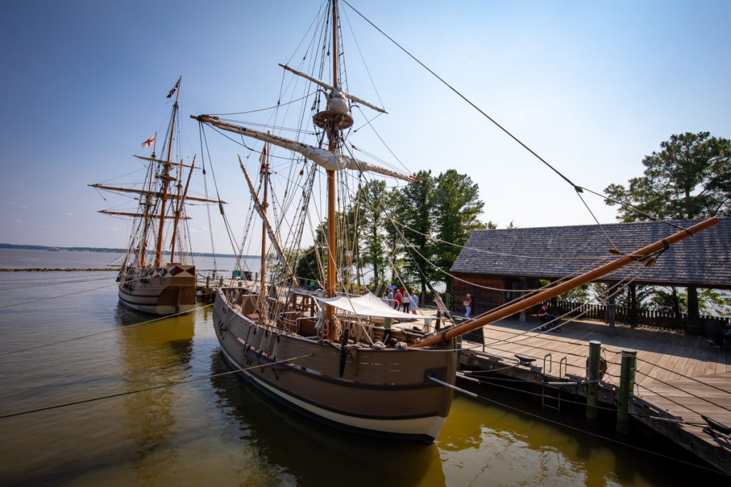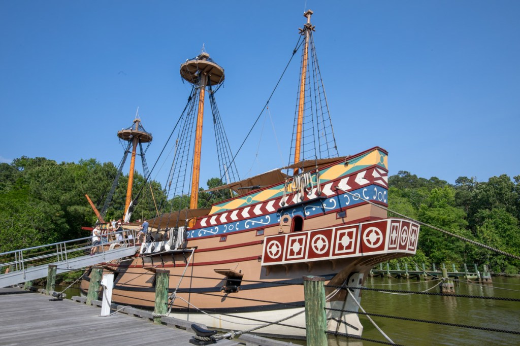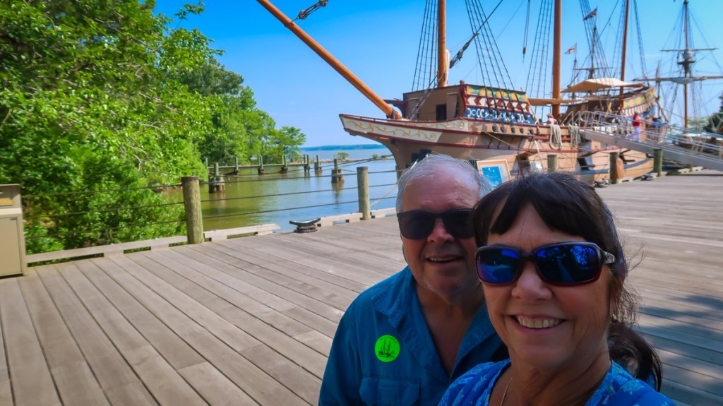 Jamestown had a massive visitor center with full site displays. We then ventured to James Fort, the pier a toured 2 of the 3 ships, and finished up at the Powhatan village. They were all authentically dressed, recreating history and sharing their story with us. Up in a tree was a large Bad Eagle nest with an eaglet in it! 🦅
