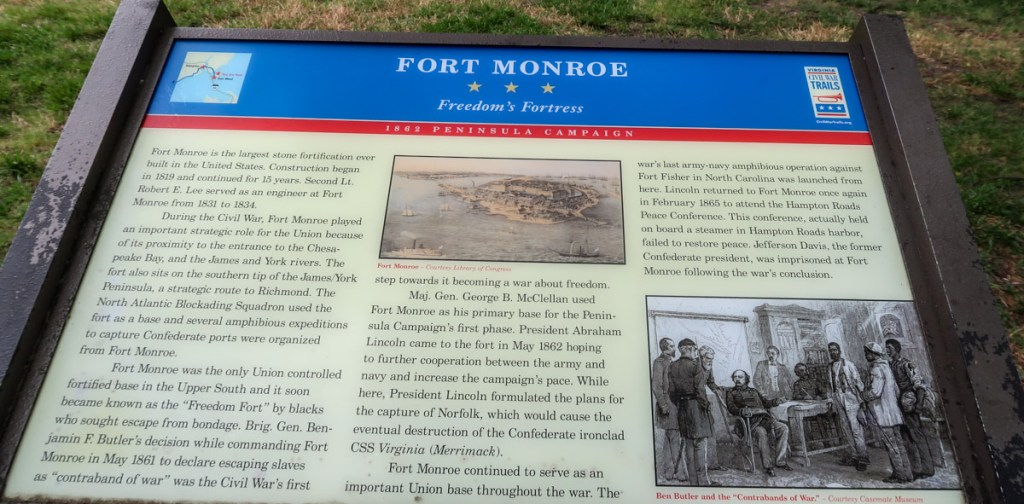 Fort Monroe National Monument is a former military installation at the southern tip of the VA peninsula. 565 acres……170 historic buildings and nearly 200 acres of natural resources. Along with Fort Wool, Fort Monroe originally guarded the navigation channel between the Chesapeake Bay and Hampton Roads.