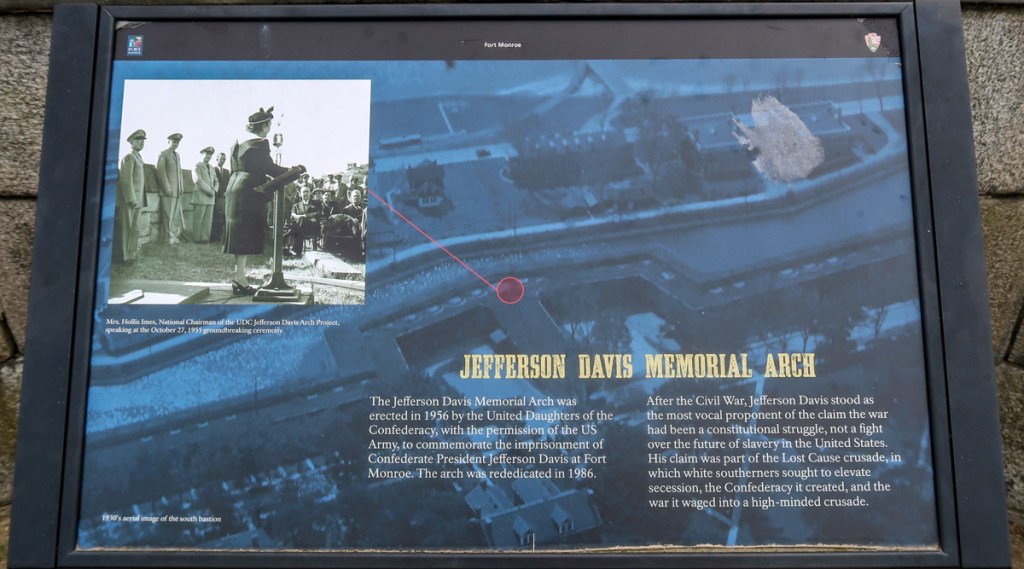 For two years following the war, the former Confederate President, Jefferson Davis, was imprisoned at the fort. His first months of confinement were spent in a cell of the casemated fort walls that is now part of its Casemate Museum.