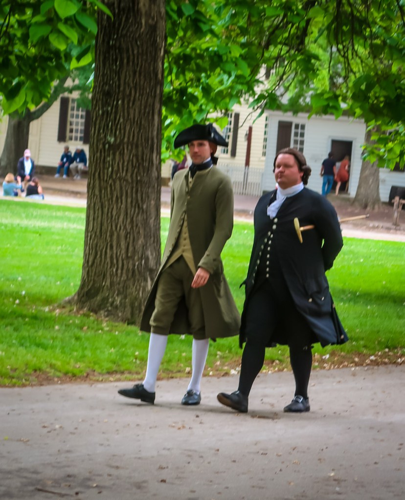 Colonial Williamsburg here we come! We encountered costumed interpreters throughout the day…on the street and in the different buildings who portrayed people who lived in Williamsburg during the American Revolution time, 1765-1785. The day was especially busy here because this same weekend we’re in town is the graduation of the College of William & Mary.