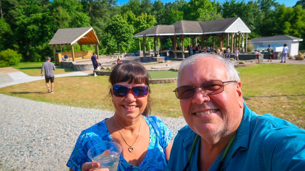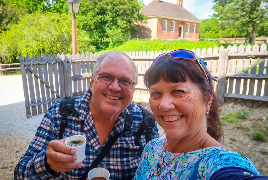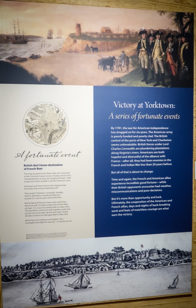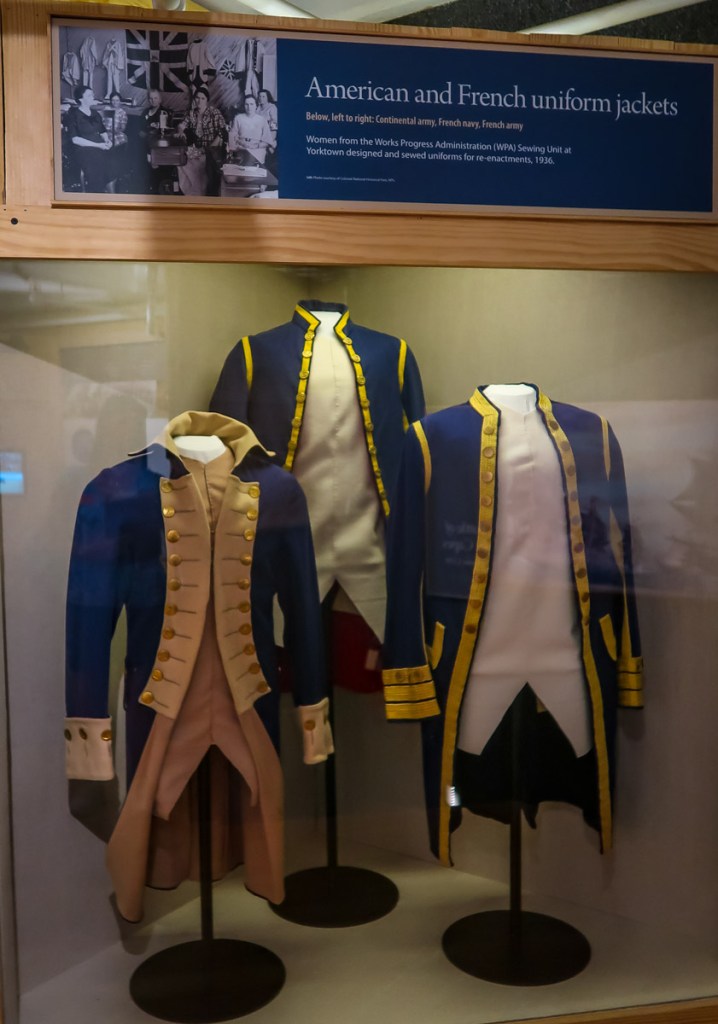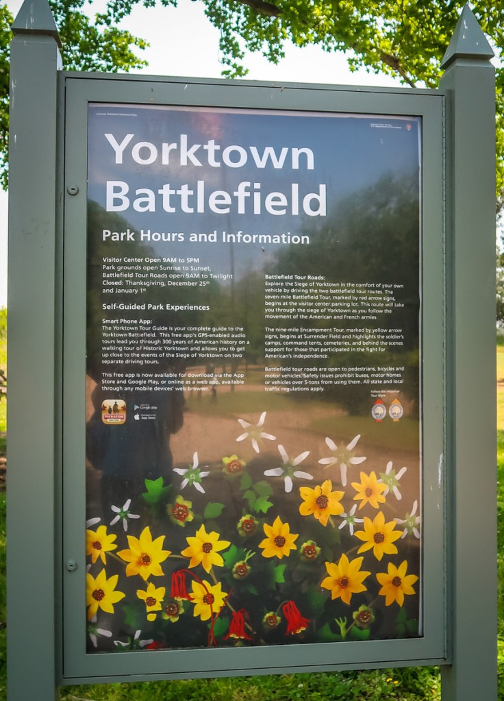 Next adventure Yorktown Battlefield and Village. What an awesome visitor center with an informative movie, presentations and displays…even I enjoyed it! Lol We then did the audio tour of the battlefield and then did the walking tour of the village in and out of homes and shops. It ended up at a beach area and yes people were swimming and enjoying this little block of a beach. Shocked!