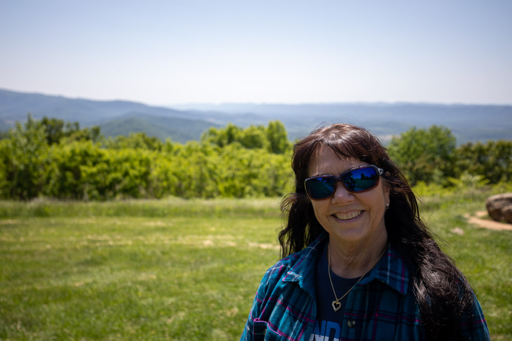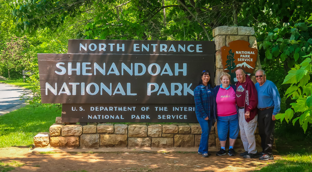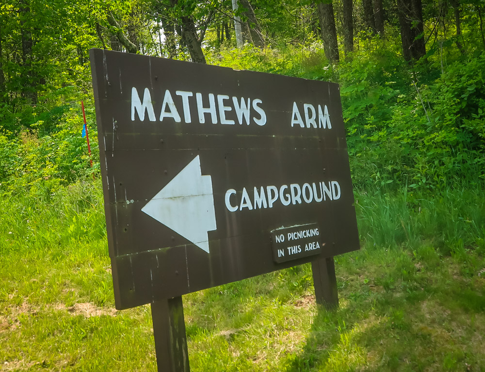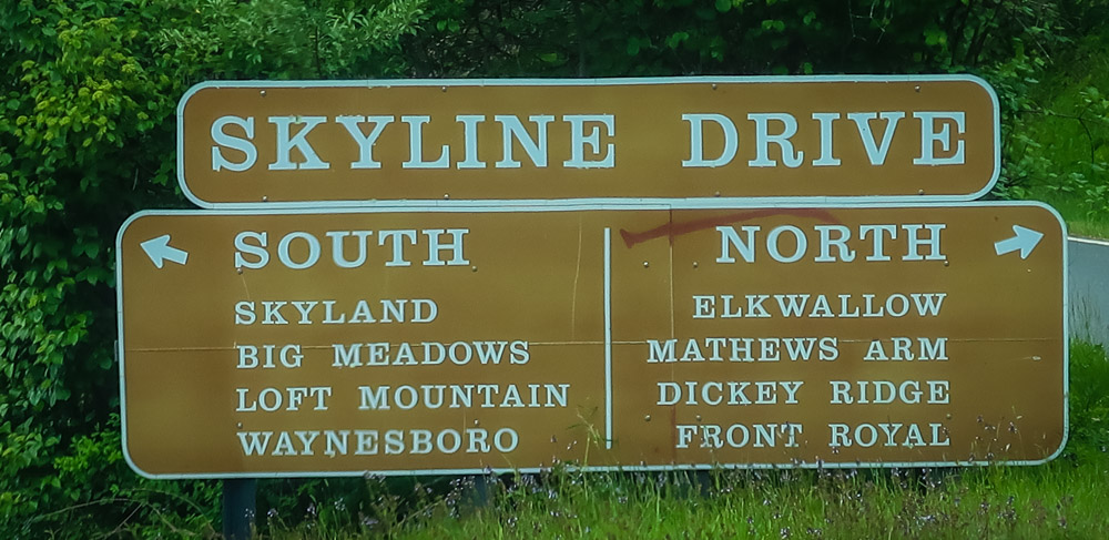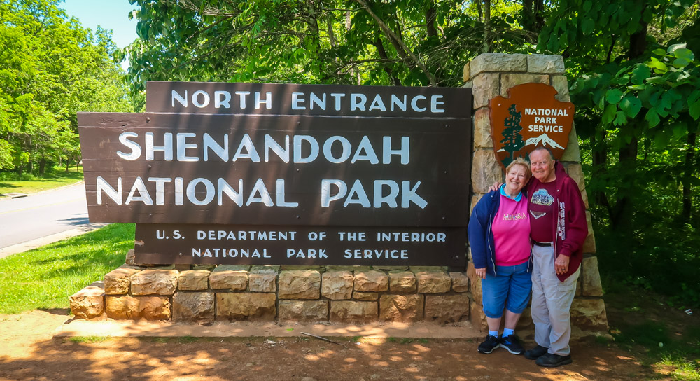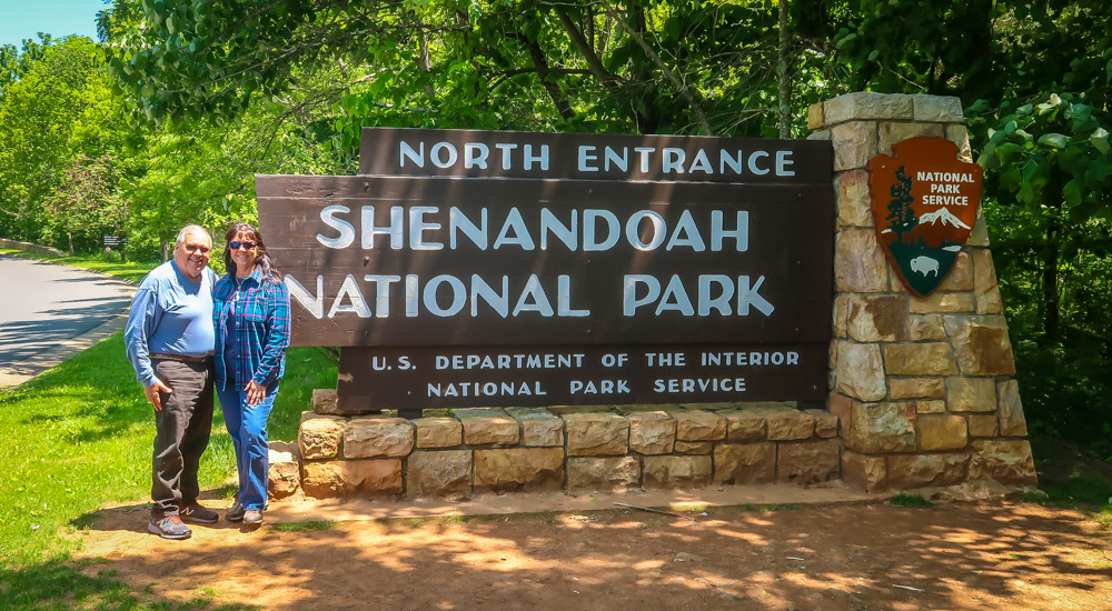 Stopped at the North Entrance sign for pictures, then to the visitor center. We toured all the exhibits, watch the movies,talked with the ranger and even bought a magnet along with getting our passport book stamped! Now off to stop at a few of the many overlooks….Signal Knob Overlook-2085 ft, Jenkins Gap Overlook – 2355 ft, Hogwallow Flats Overlook – 2685 ft, & Gravel Springs Gap – 2655 ft. Our campground – Matthew’s Arm CG is 2750 ft.